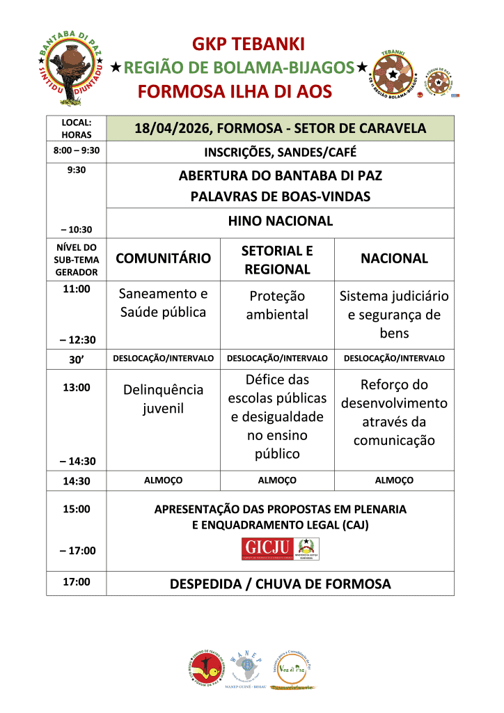 O GKP Tebanki é membro do CTO-Bissau/Fórum de Paz, que implementa a série “Bantaba di Paz 2026” em todos os setores administrativos da Guiné-Bissau, em parceria com a Voz di Paz e a WANEP-GB.