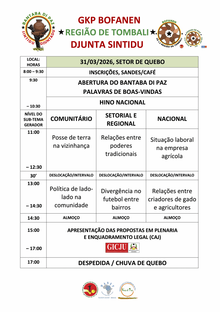 O GKP Bofanen é membro do CTO-Bissau/Fórum de Paz, que implementa a série “Bantaba di Paz 2026” em todos os setores administrativos da Guiné-Bissau, em parceria com a Voz di Paz e a WANEP-GB.