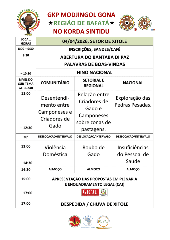 O GKP Modjingol Gona é membro do CTO-Bissau/Fórum de Paz, que implementa a série “Bantaba di Paz 2026” em todos os setores administrativos da Guiné-Bissau, em parceria com a Voz di Paz e a WANEP-GB.