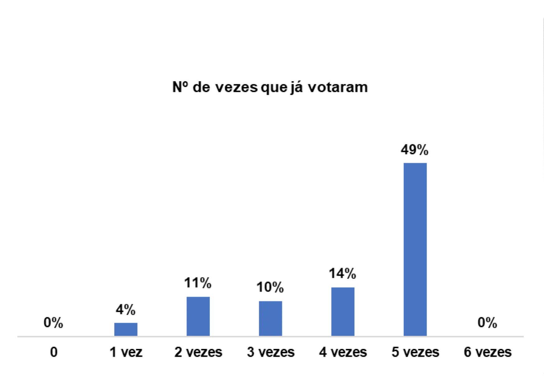 Nesse ponto, procurou-se retratar o nível de confiança dos eleitores nos candidatos, sobretudo os aspetos que os levam a votar em determinados candidatos ou partidos. Ao serem questionados sobre o número de vezes que já votaram, ao longo dessa recente história eleitoral, percebeu-se que, num universo de 80 entrevistados, 49% assumiram que já votaram pelo menos 5 vezes.