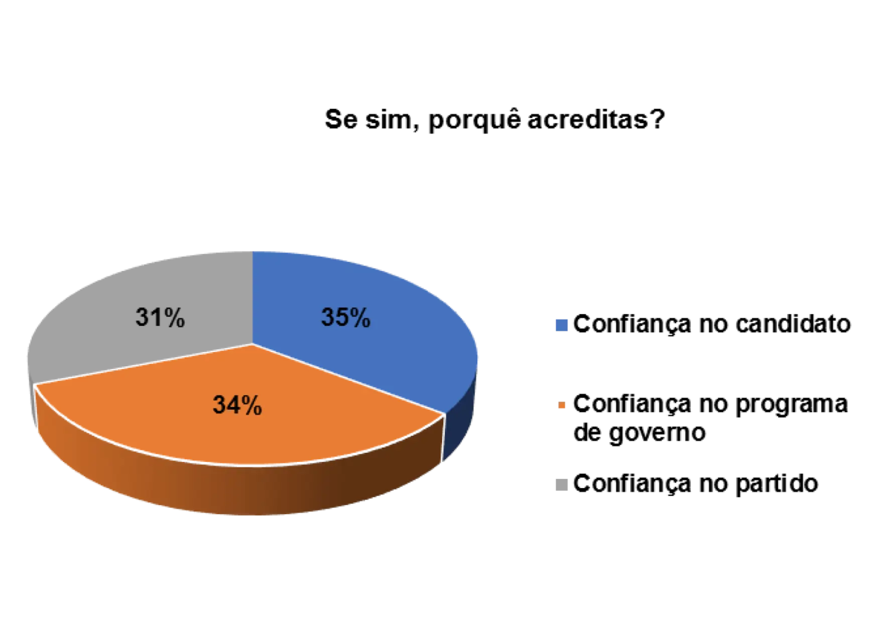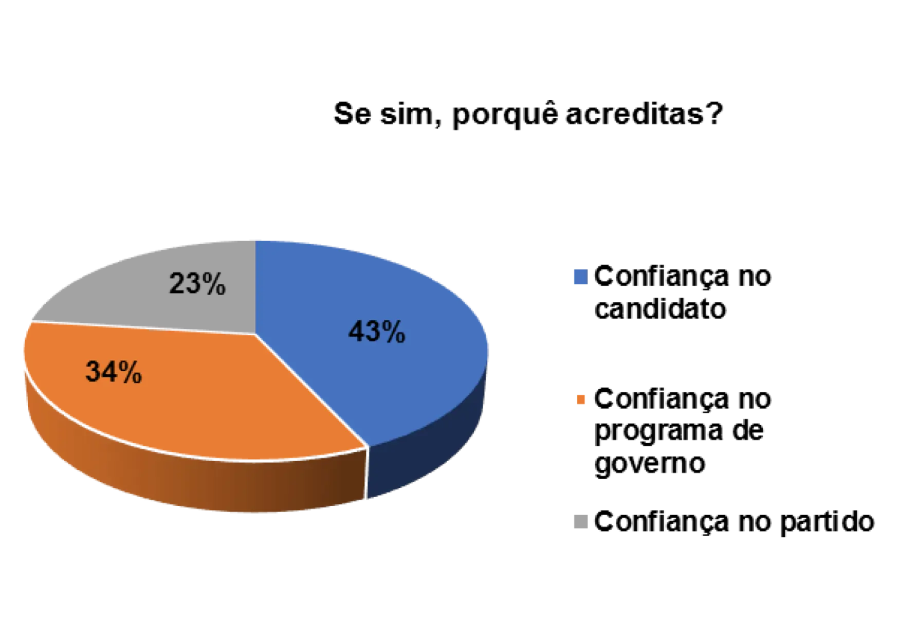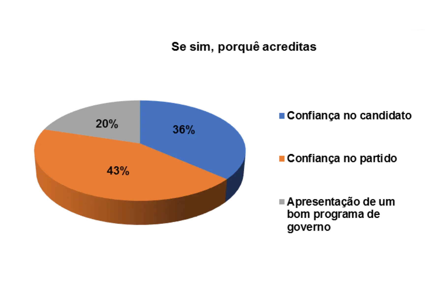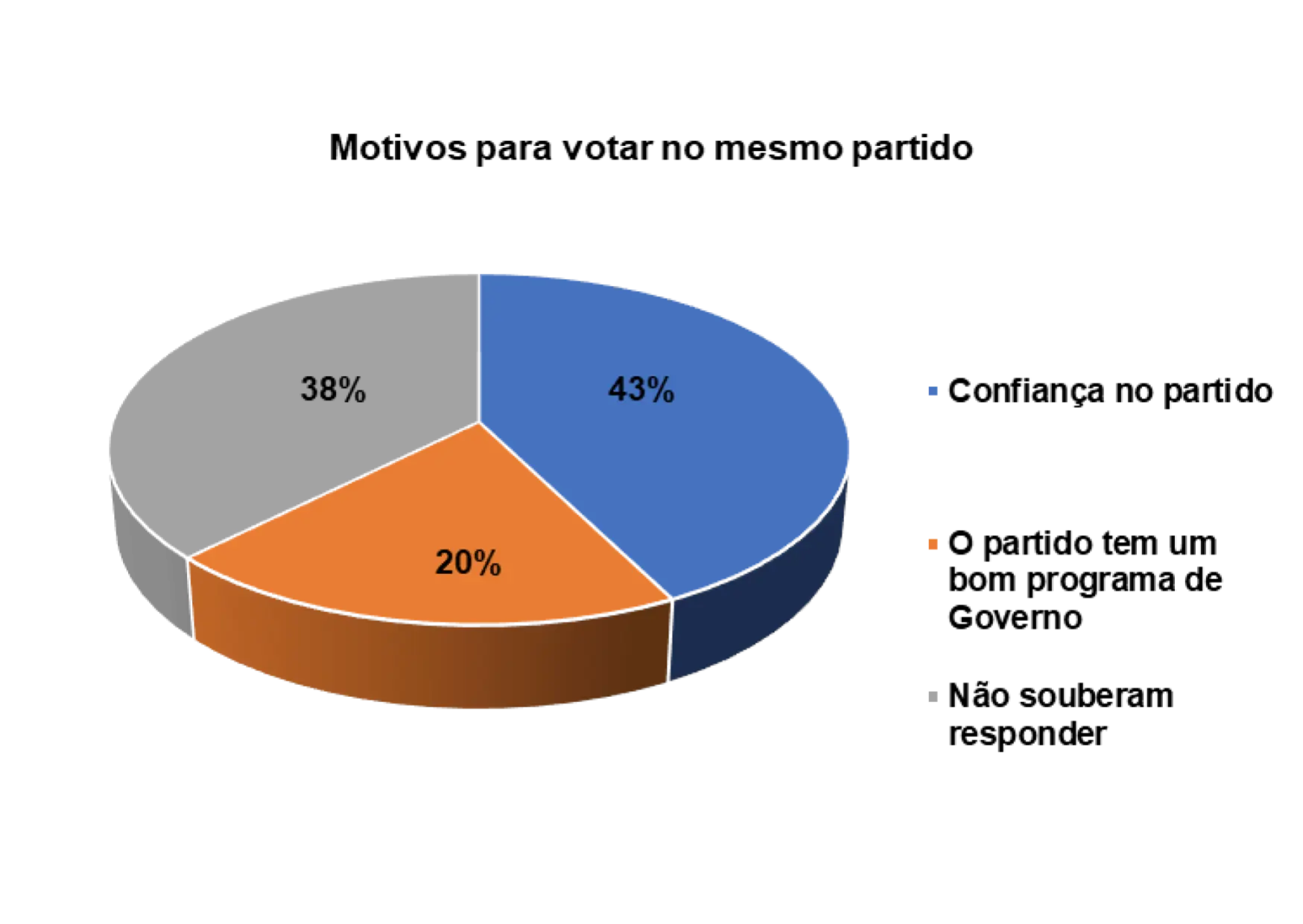 Contudo, quando foram instados a argumentar sobre o que os motiva a votar sempre no mesmo partido, obtiveram-se as seguintes respostas: 43% dizem votar pela confiança no partido, e 20% pela qualidade do programa eleitoral.