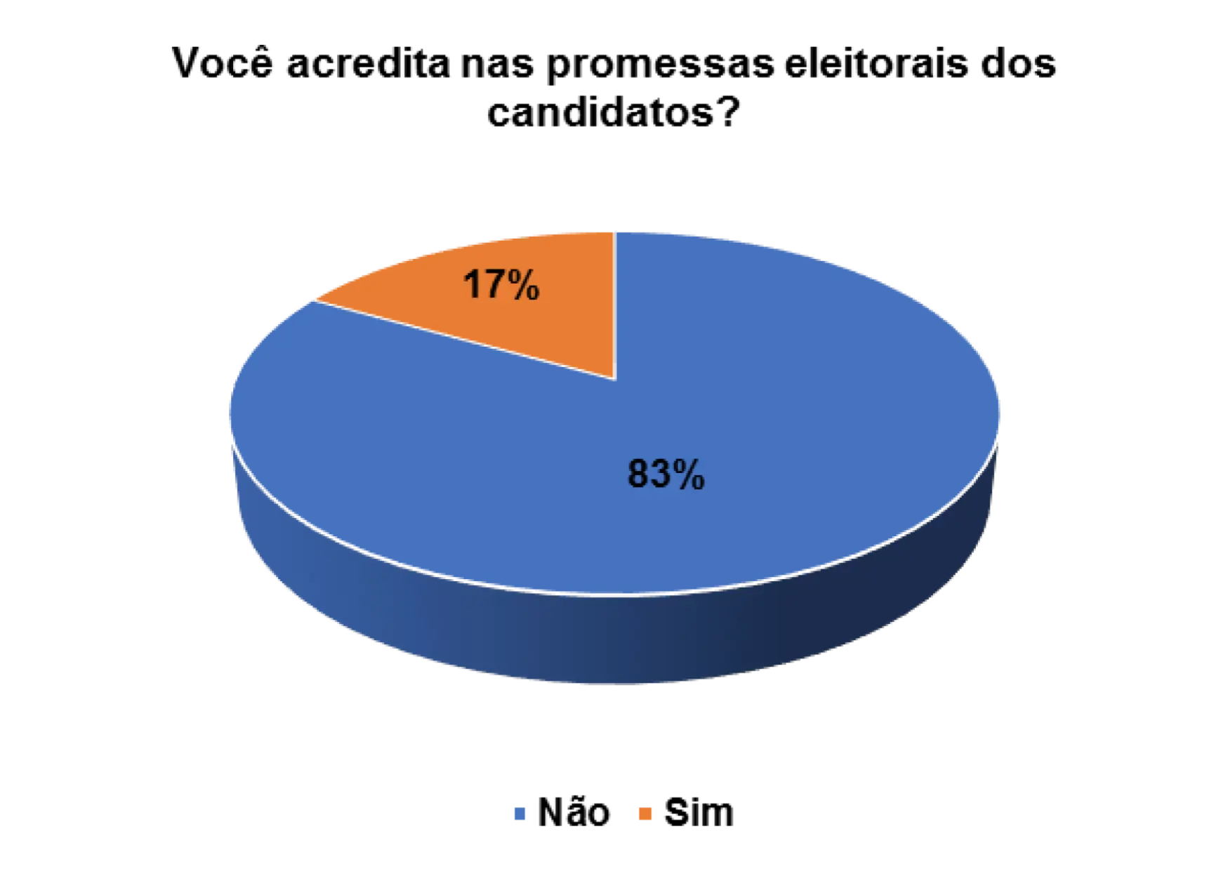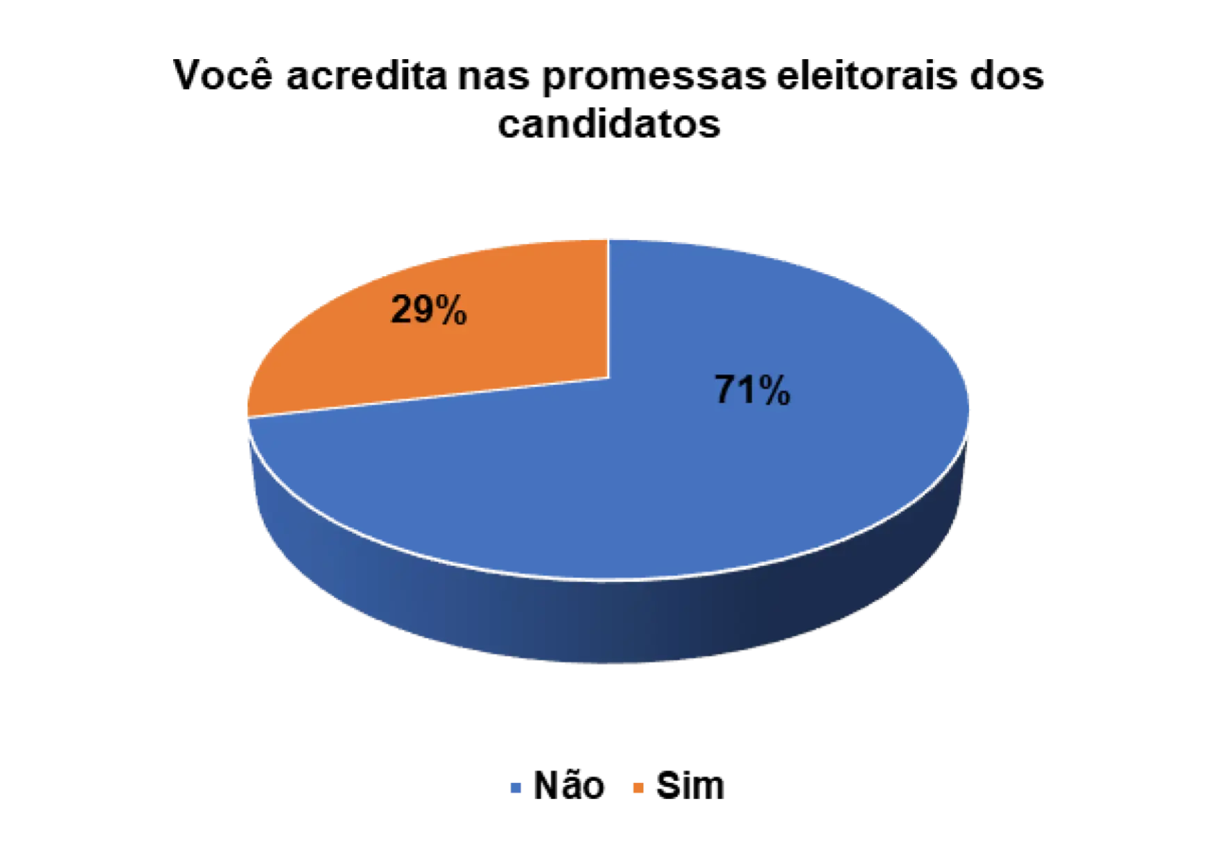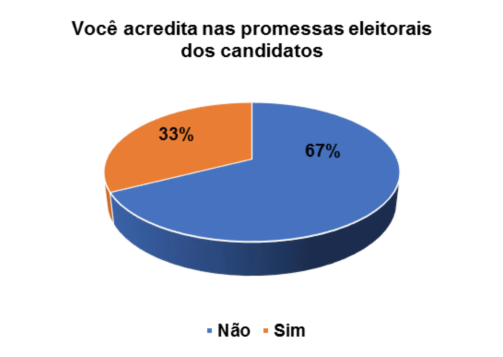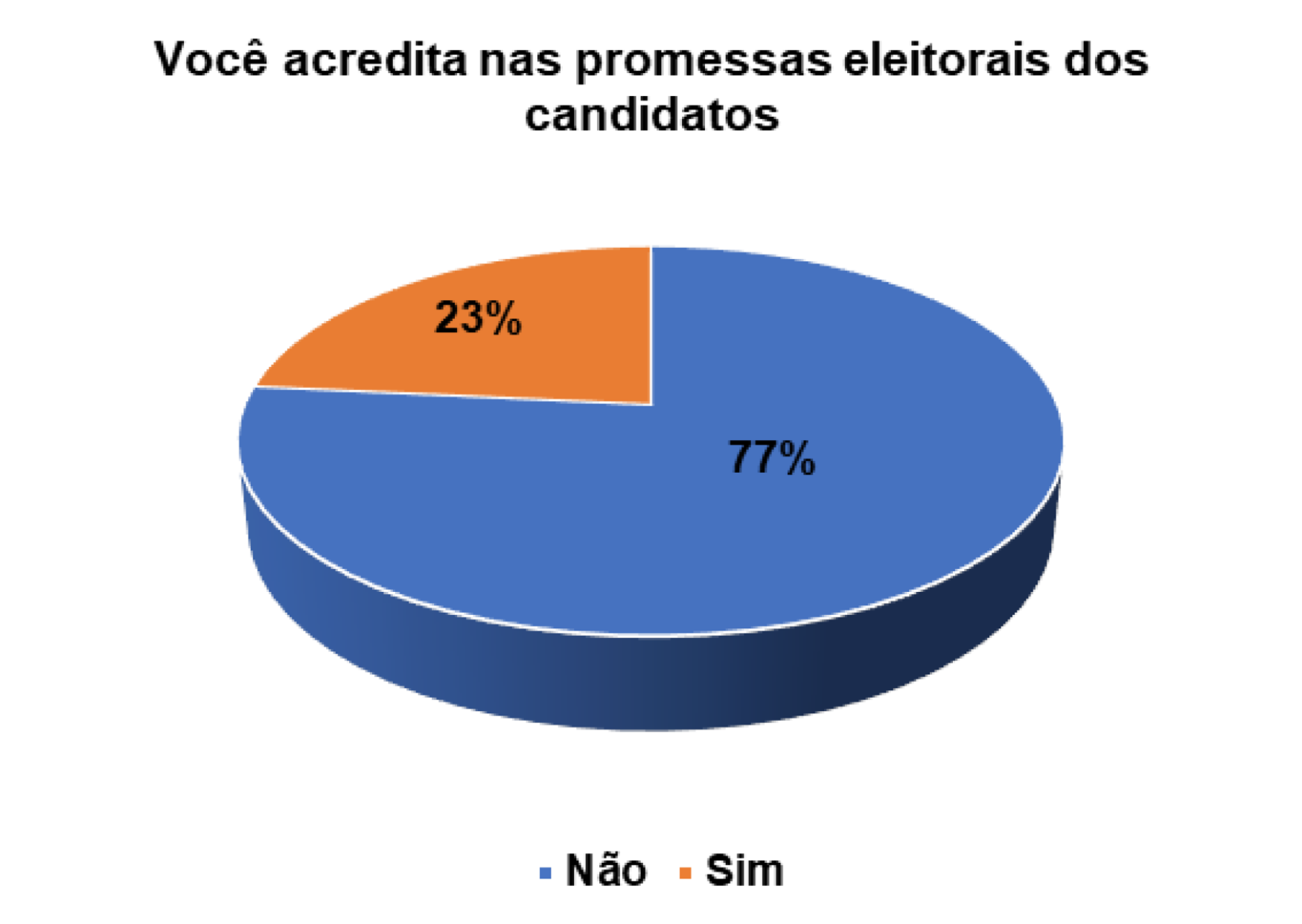 Entretanto, já para os eleitores entrevistados que afirmam não acreditarem nas promessas eleitorais dos candidatos, 14% alegam não confiarem no candidato e 44% porque o candidato não cumpriu com as promessas das campanhas anteriores.