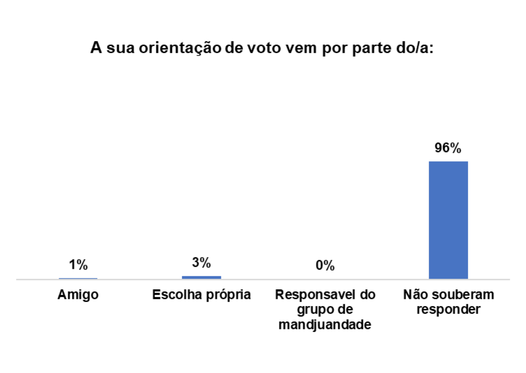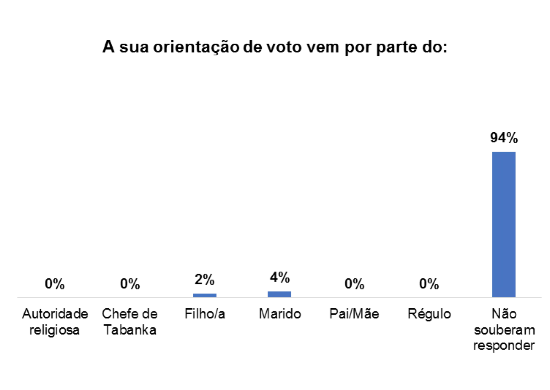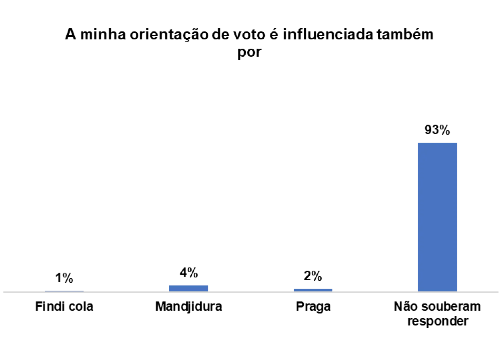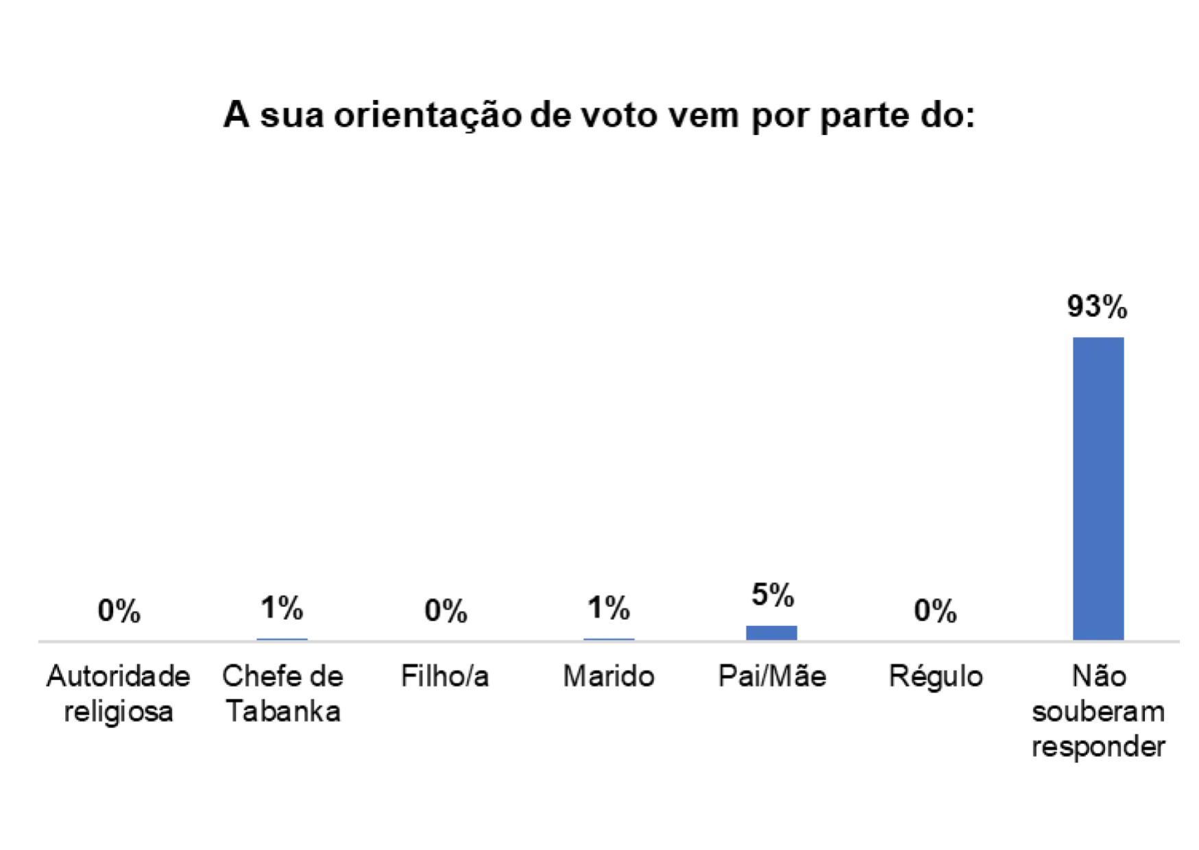 Além disso, 4% dos/as entrevistados/as afirmaram que o voto também é influenciado por Mandjidura.
