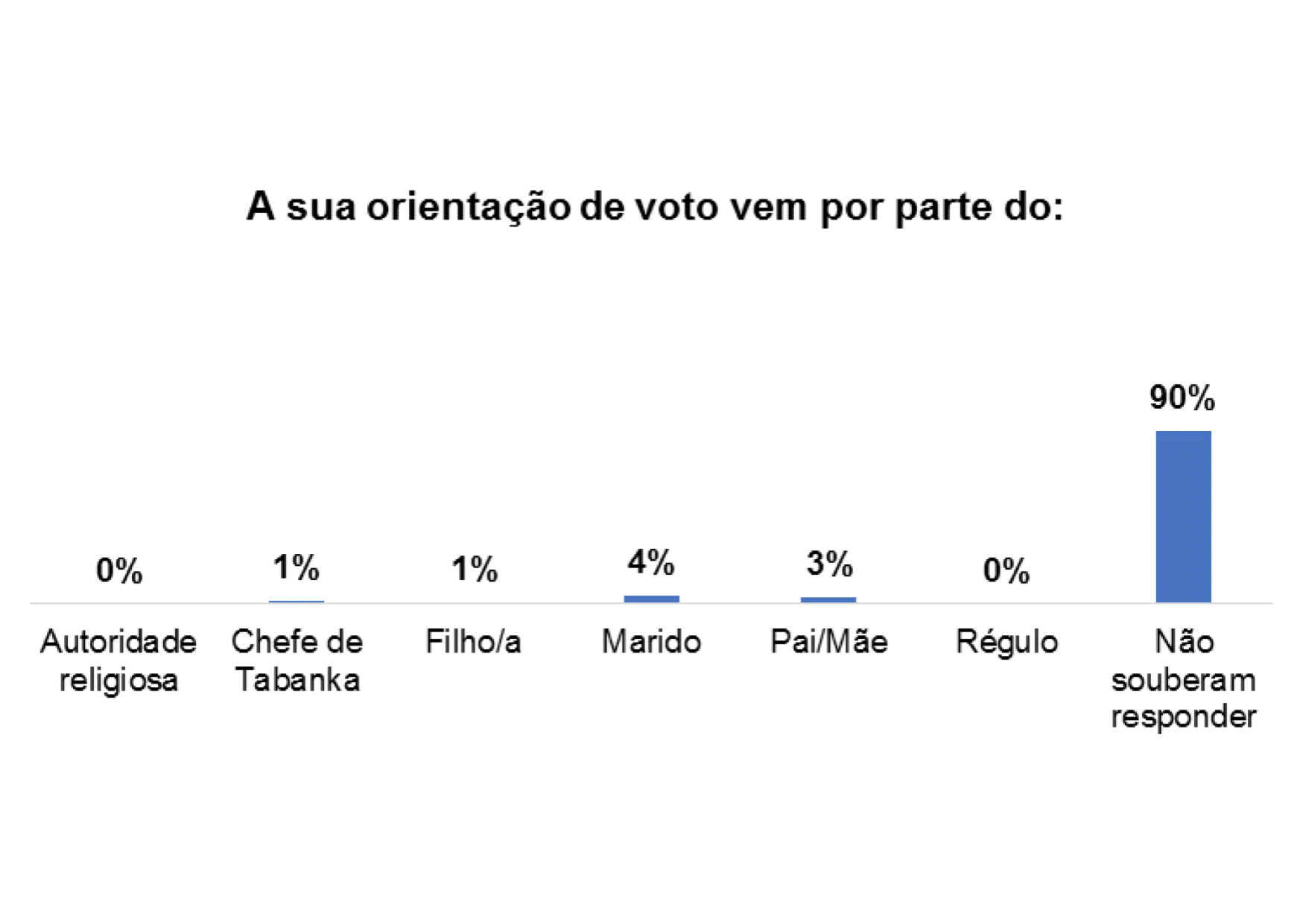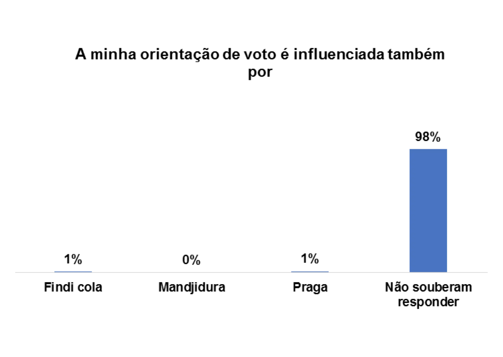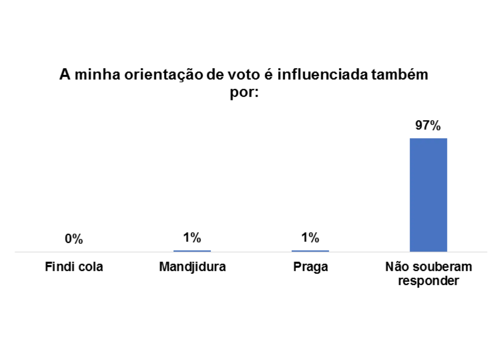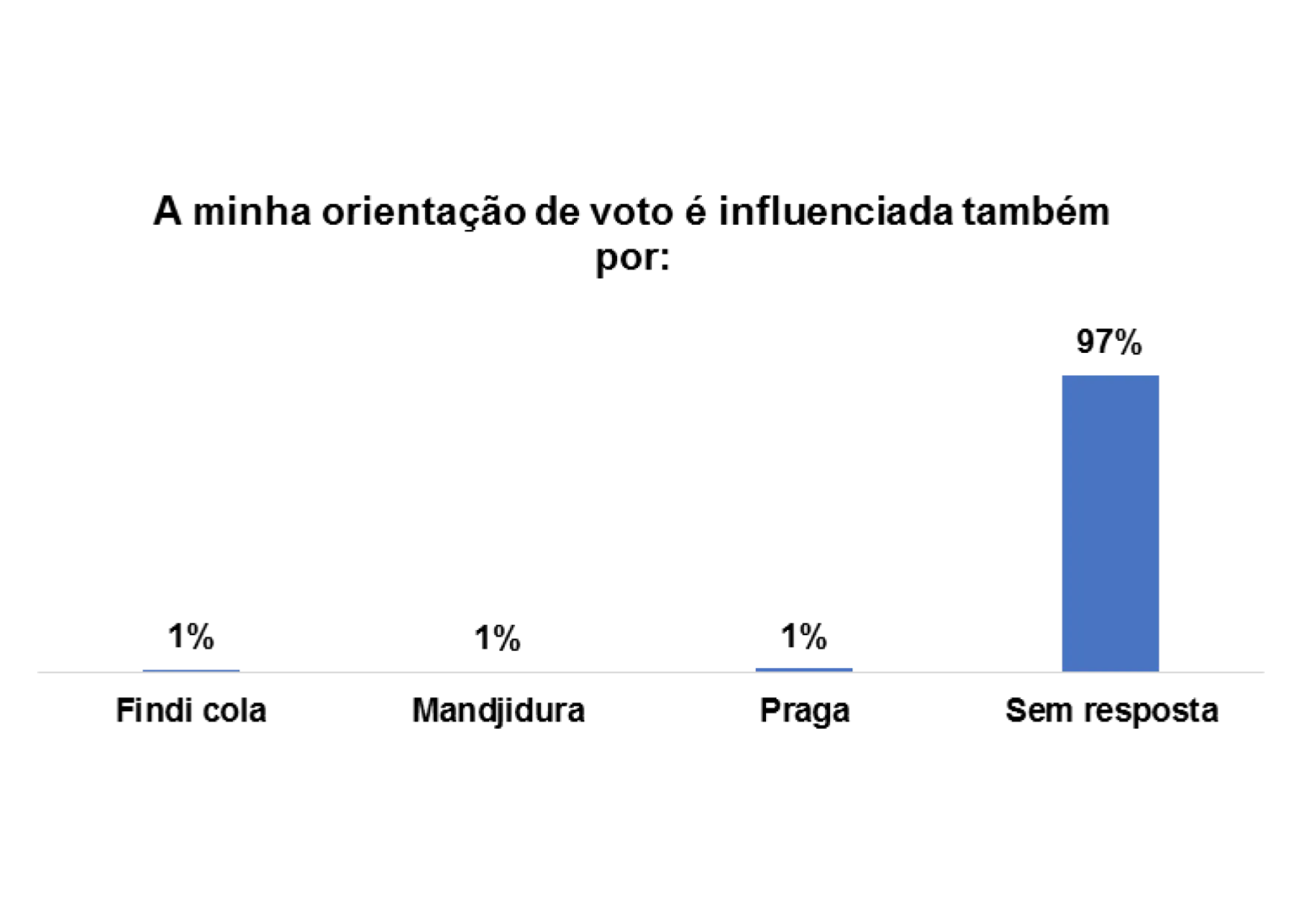 Além disso, 4% dos/as entrevistados/as afirmaram que o voto também é influenciado por Mandjidura.