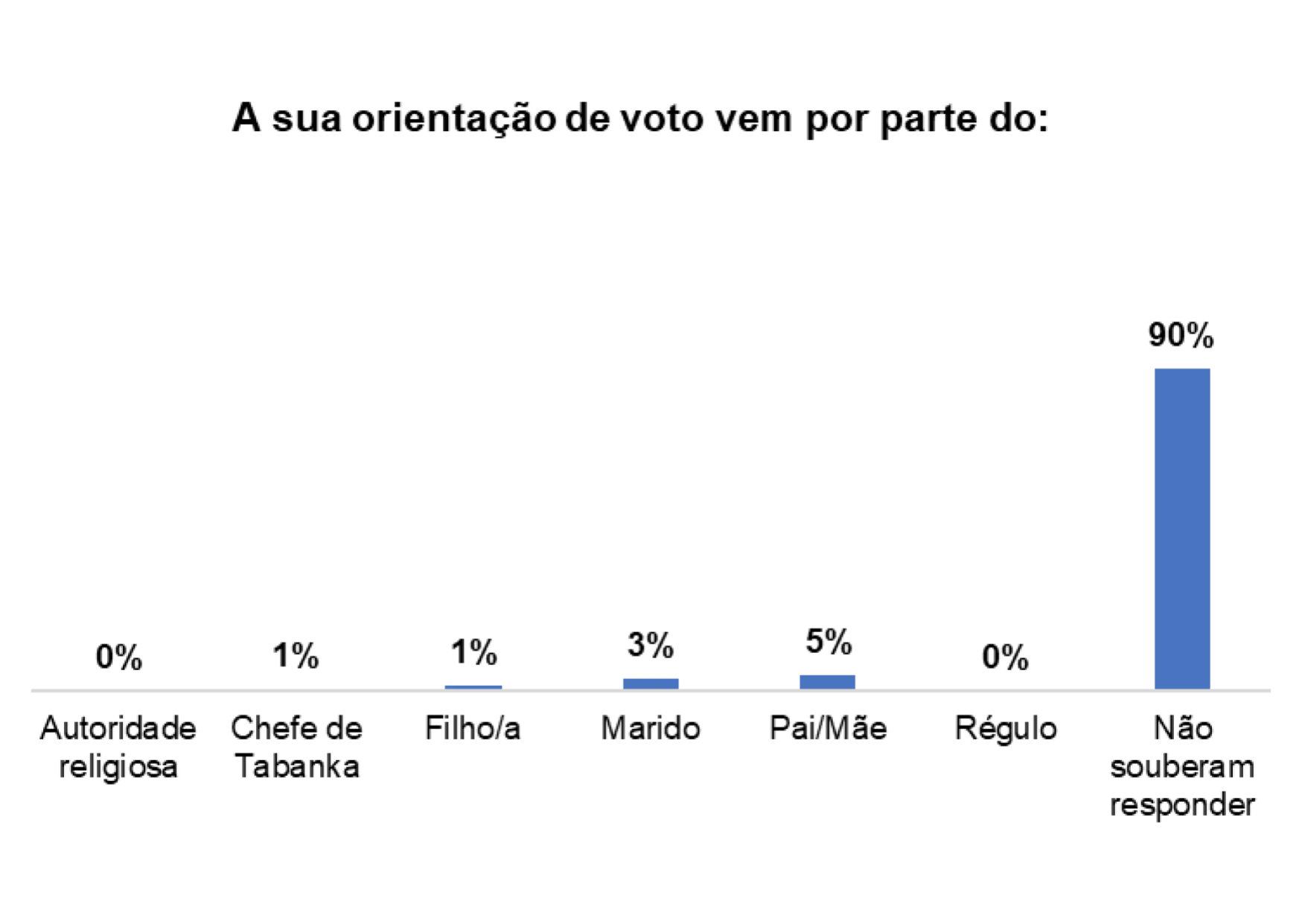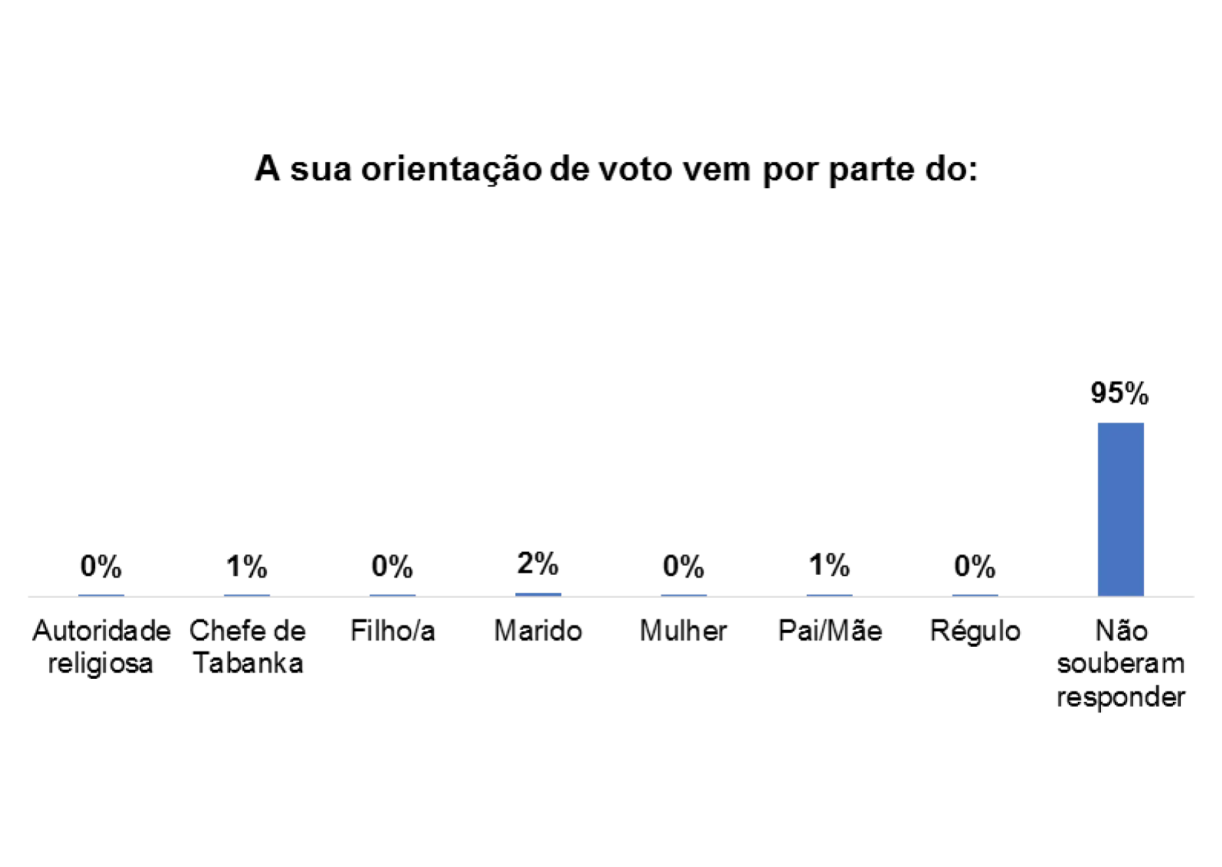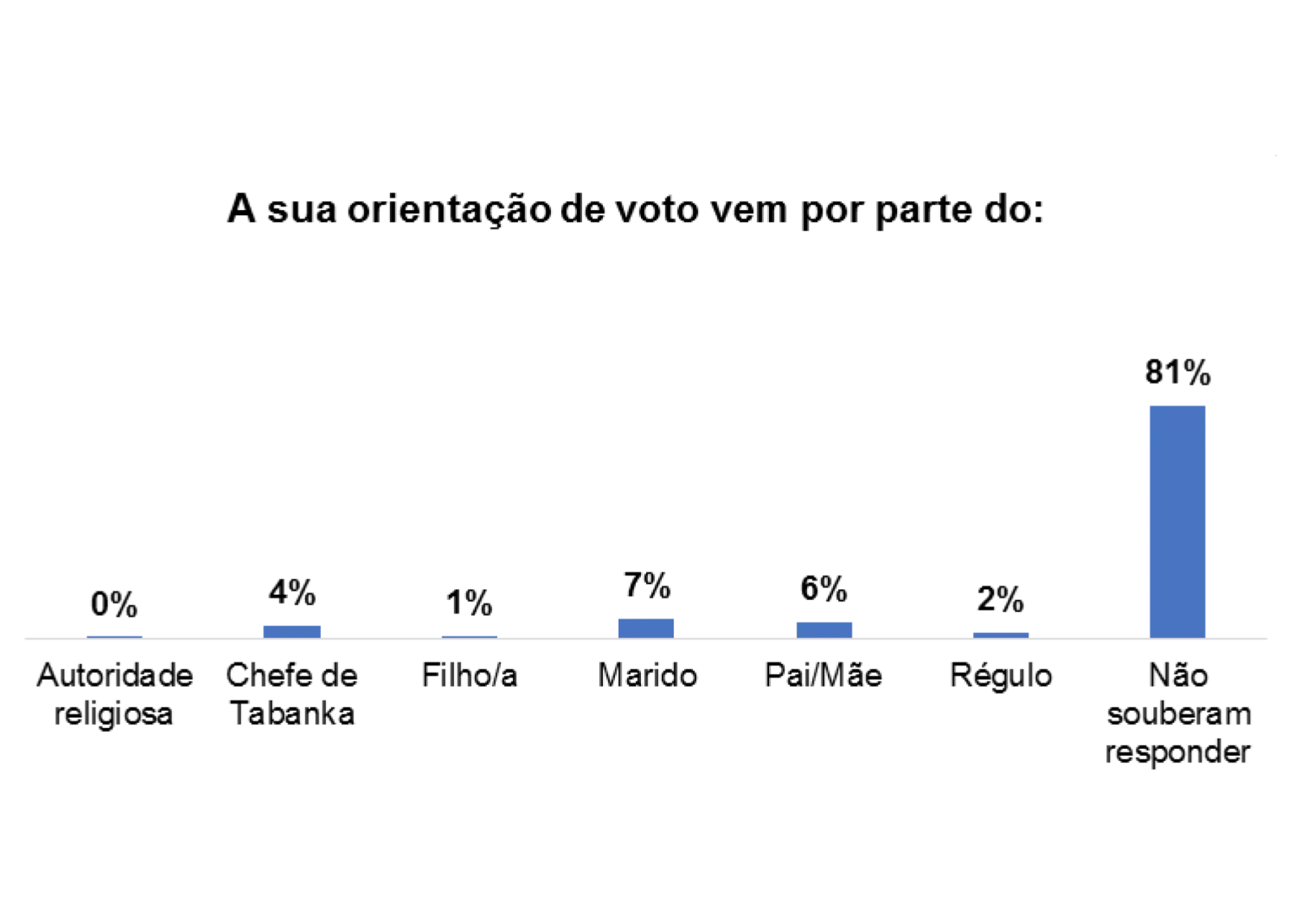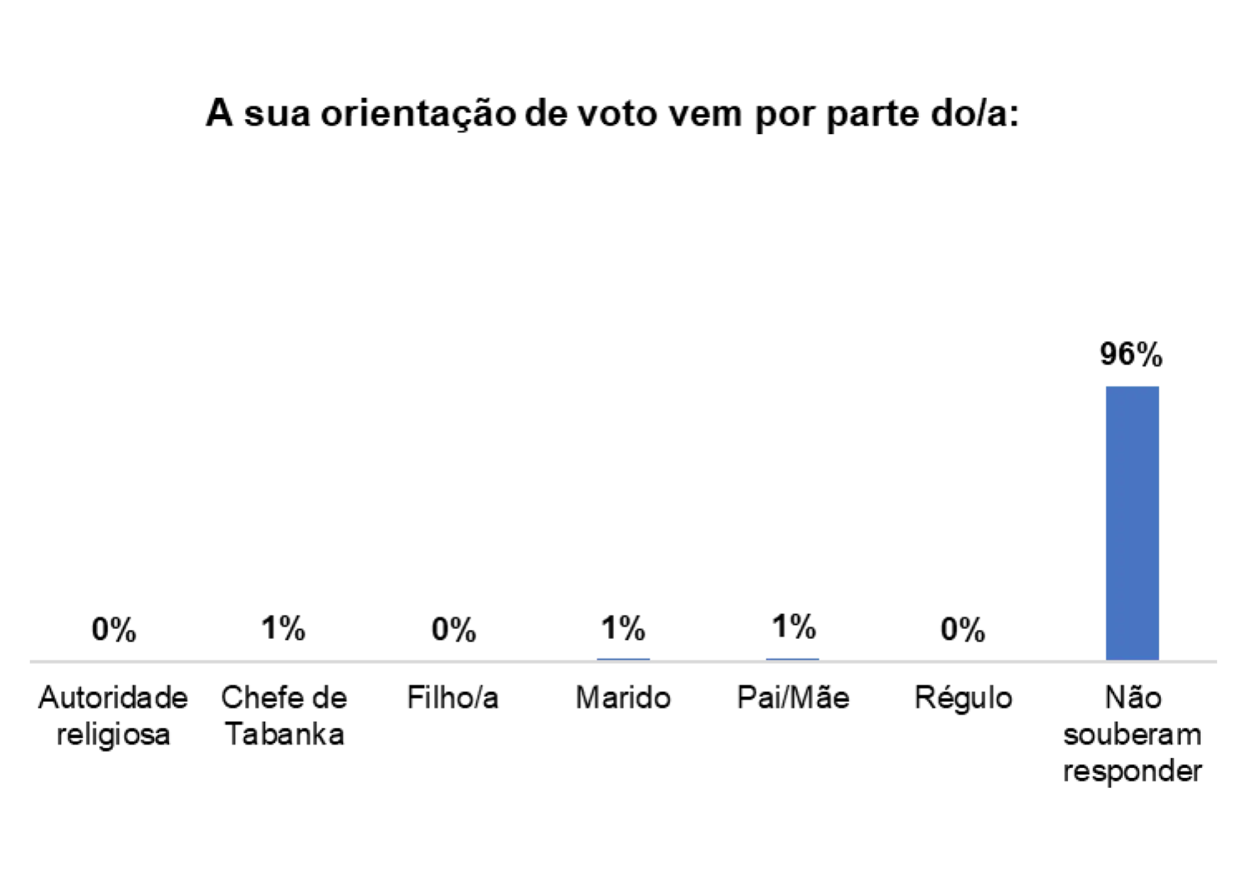 Além disso, 4% dos/as entrevistados/as afirmaram que o voto também é influenciado por Mandjidura.