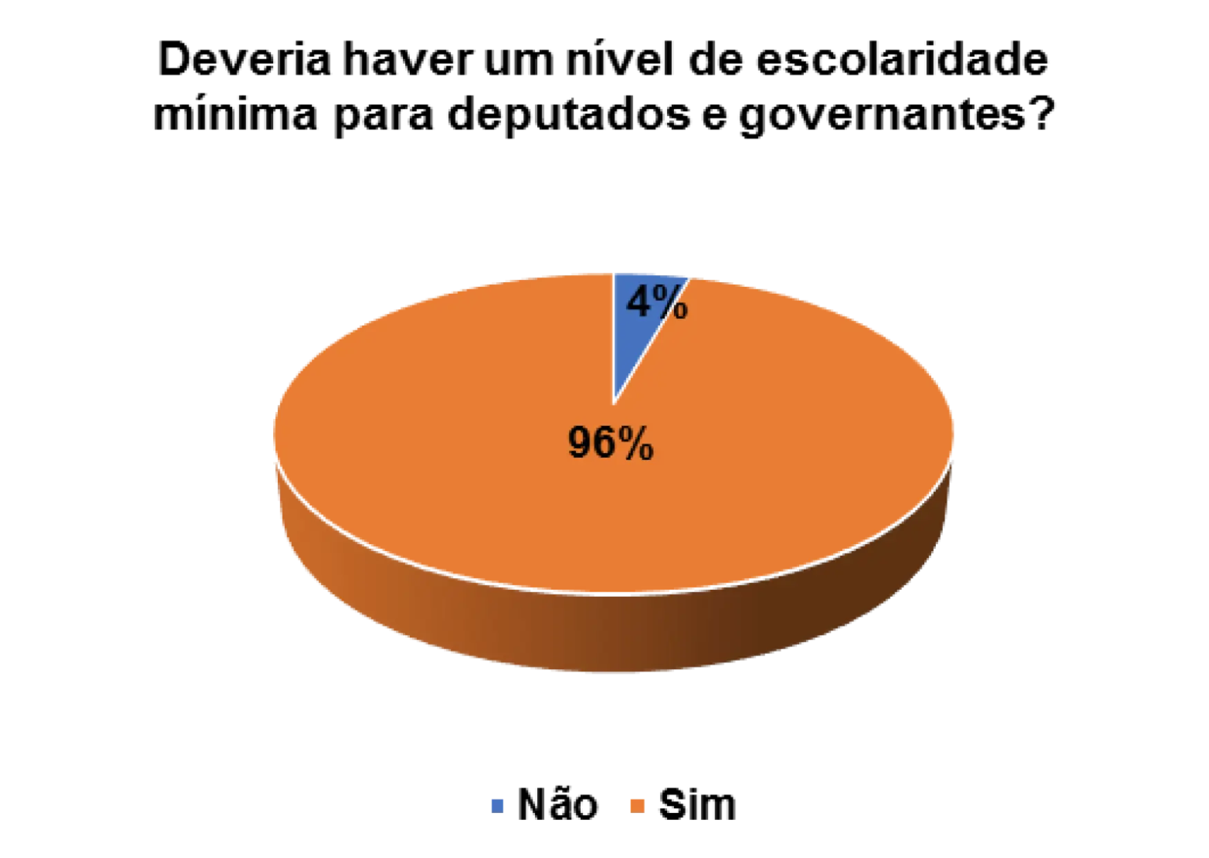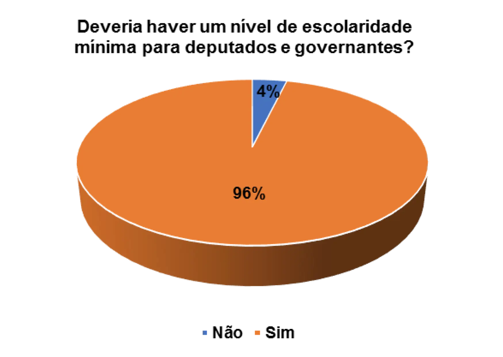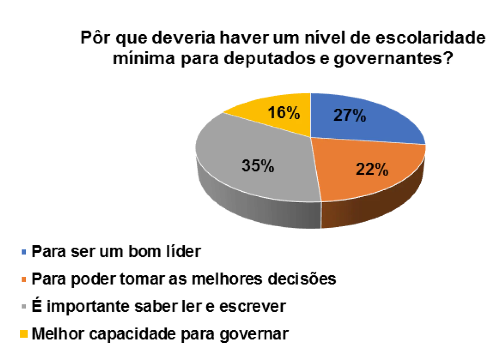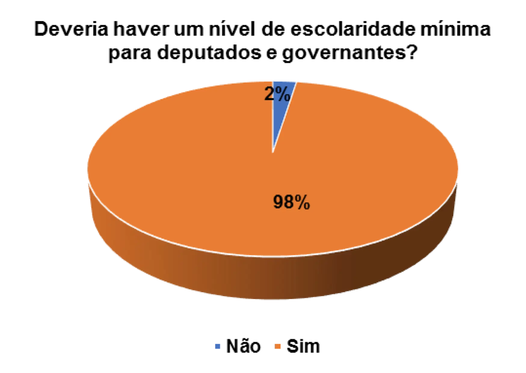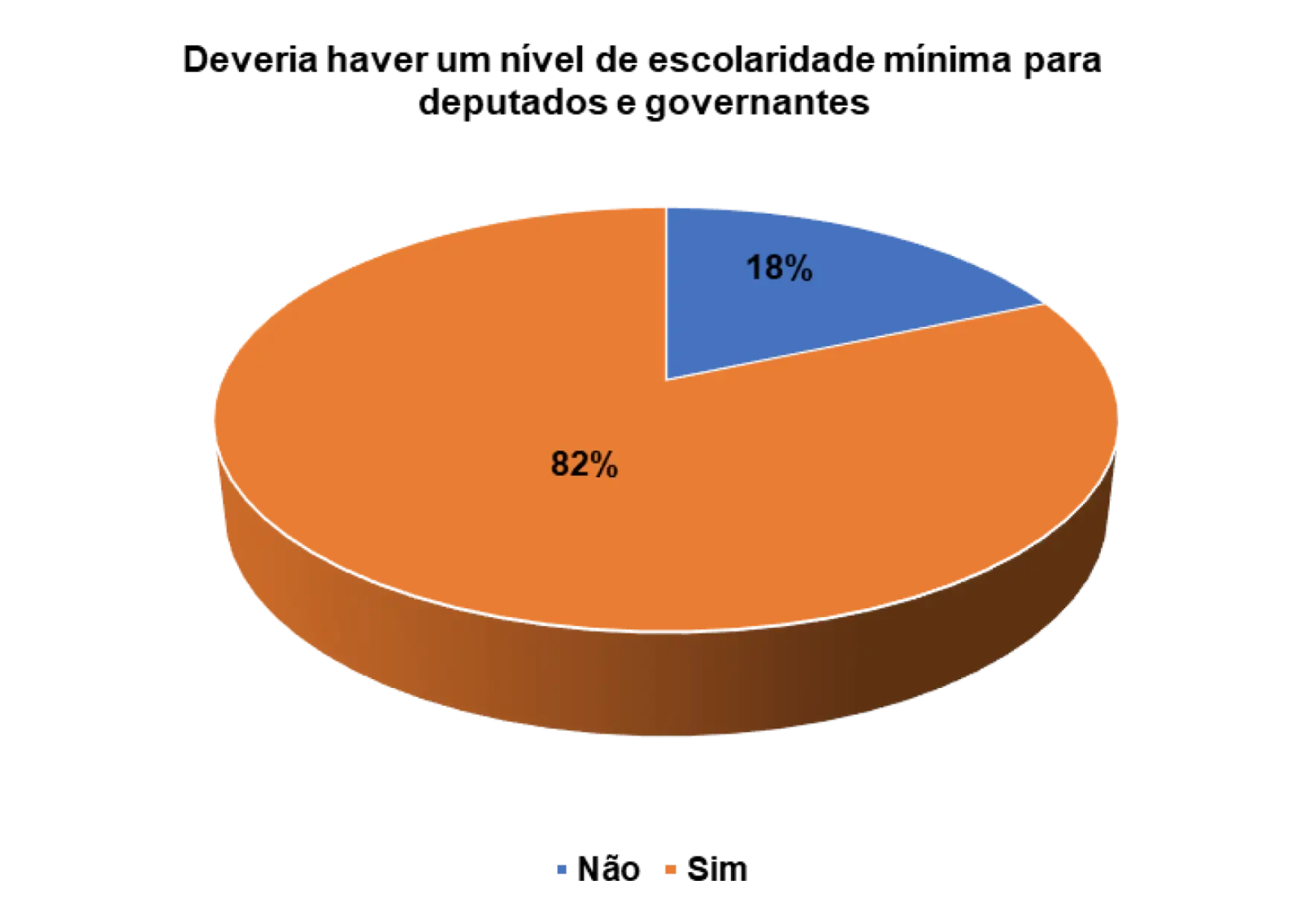 Quando questionados/as sobre a importância da escolaridade mínima para deputados e governantes, os 82% dos/as entrevistados/as afirmam que sim deveria haver um nível de escolaridade mínima para deputados e governantes.