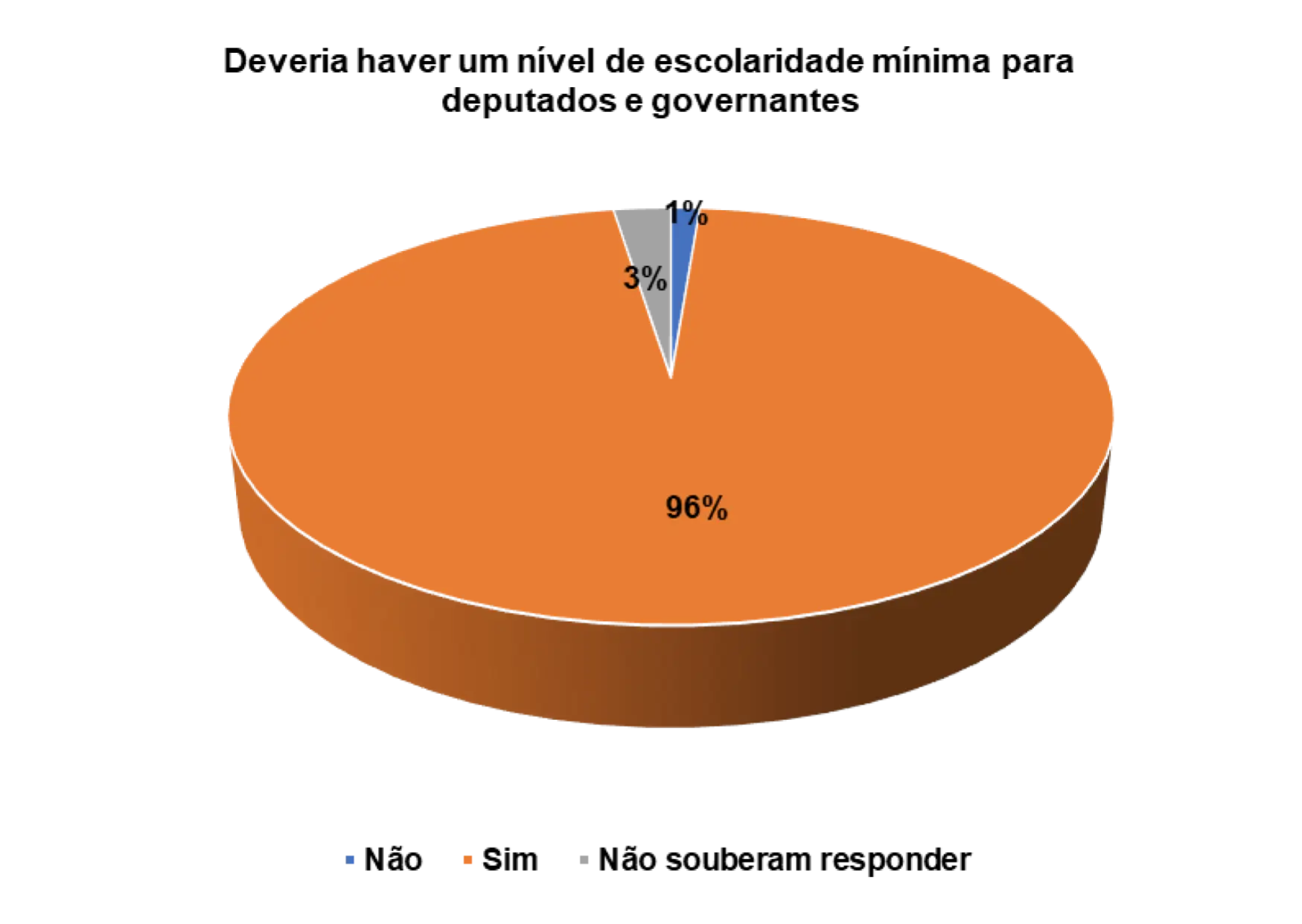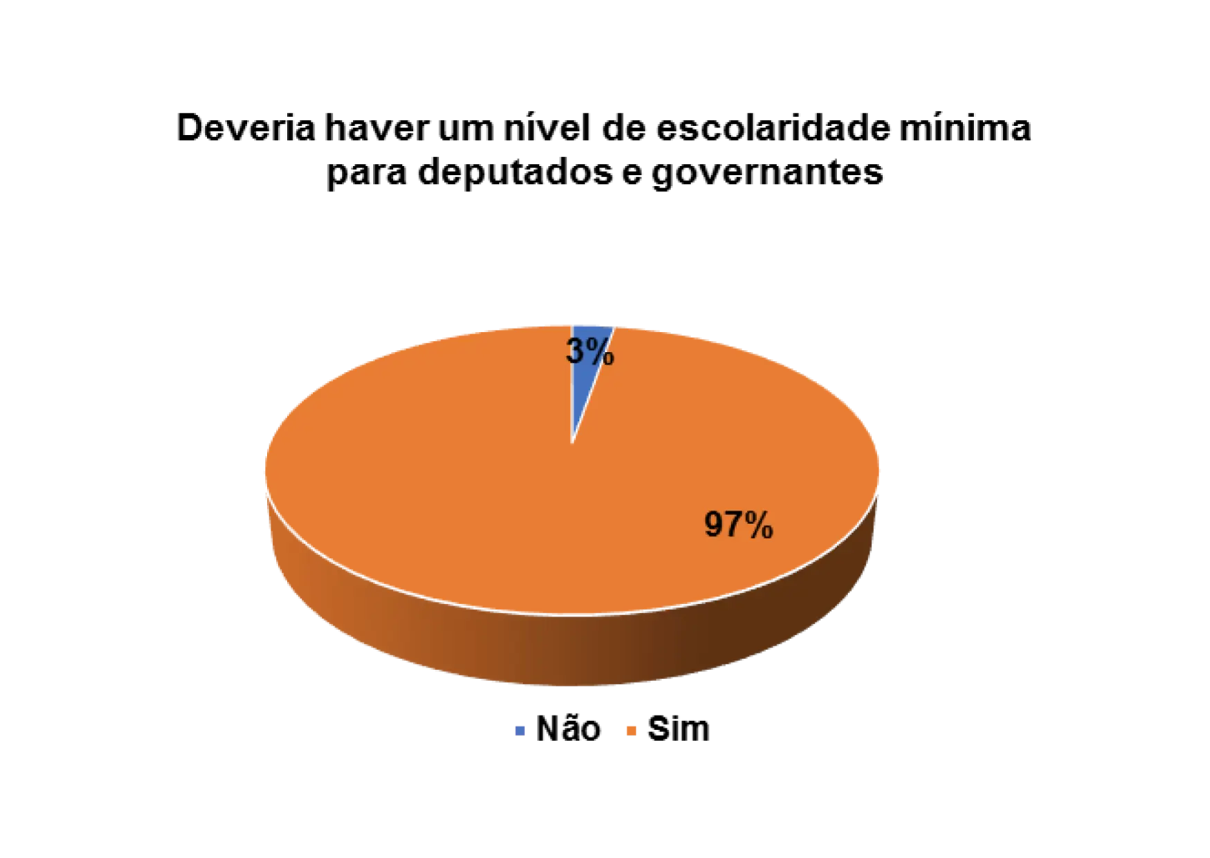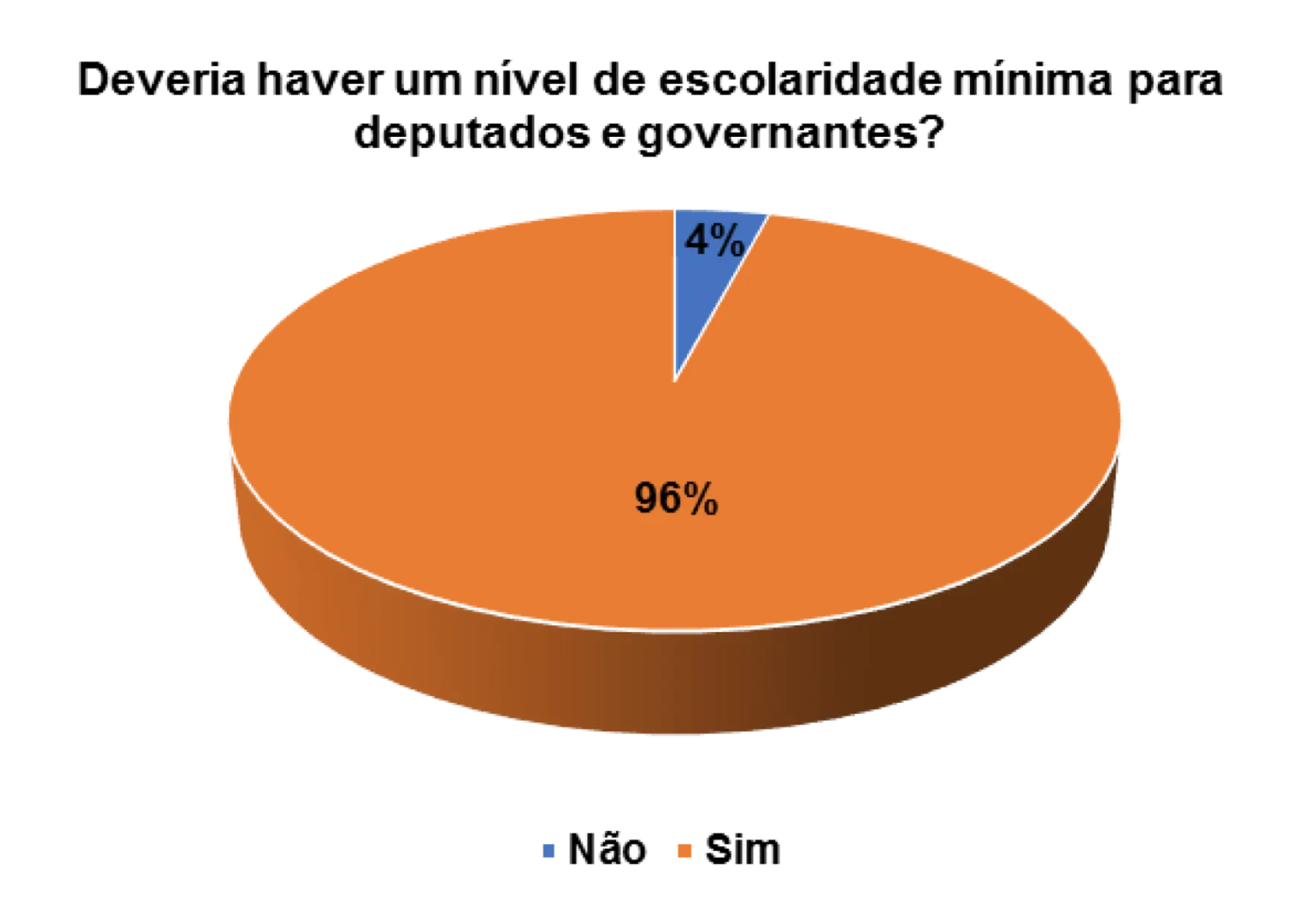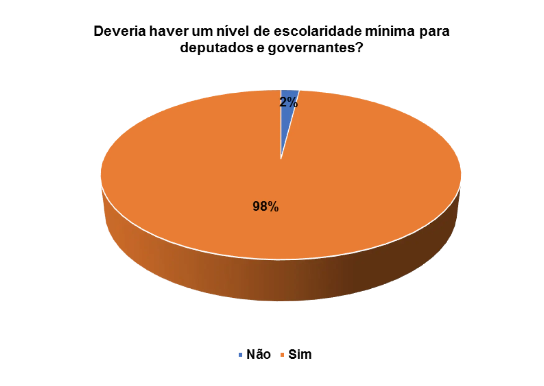 Quando questionados/as sobre a importância da escolaridade mínima para deputados e governantes, os 82% dos/as entrevistados/as afirmam que sim deveria haver um nível de escolaridade mínima para deputados e governantes.