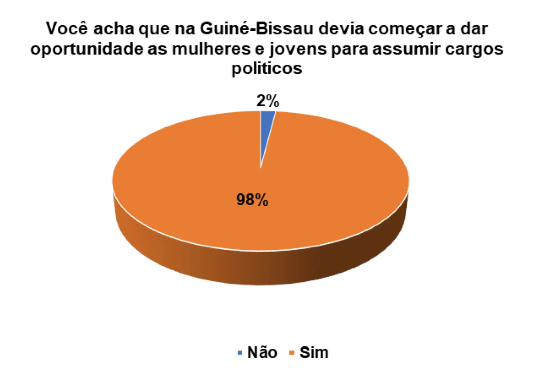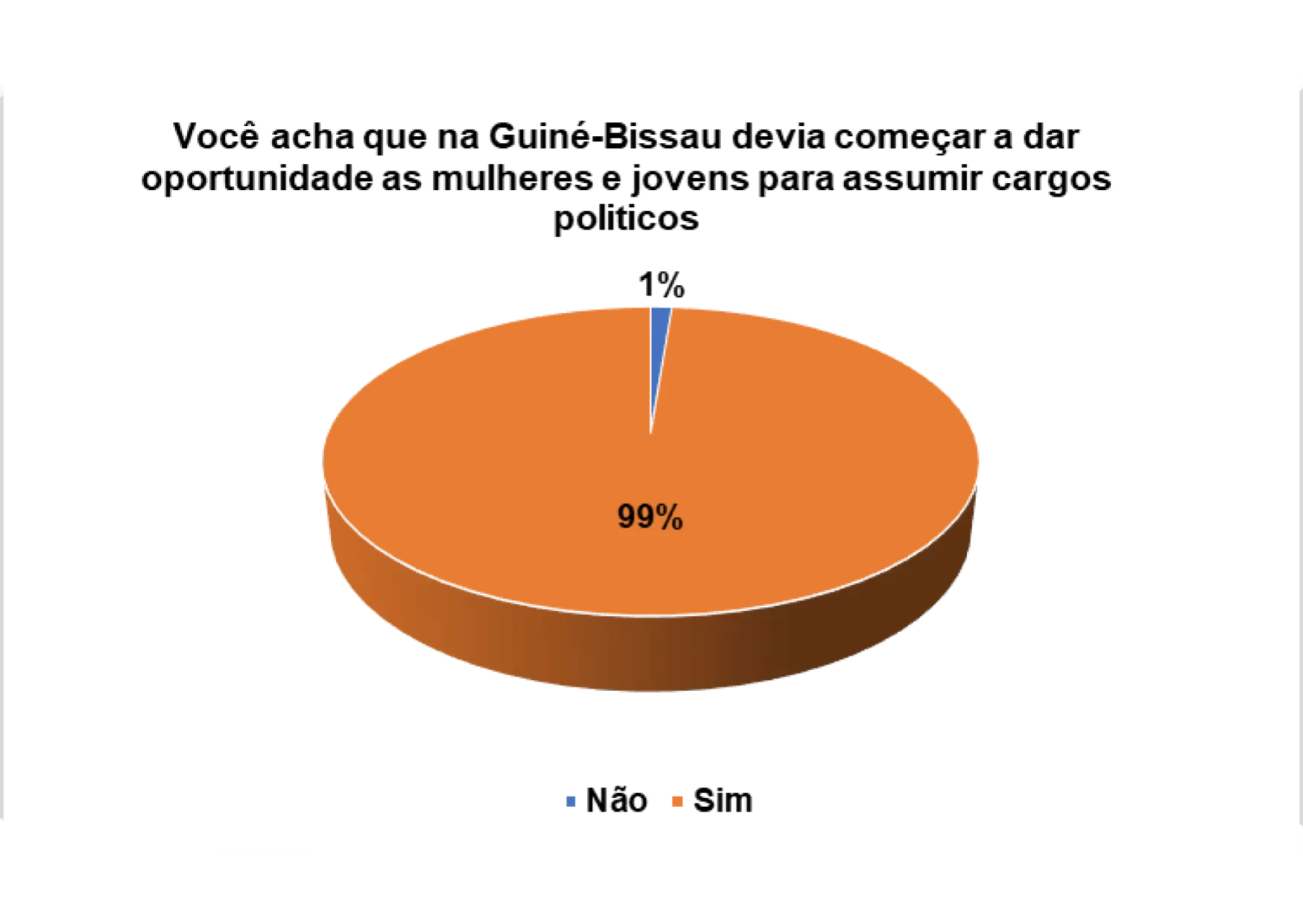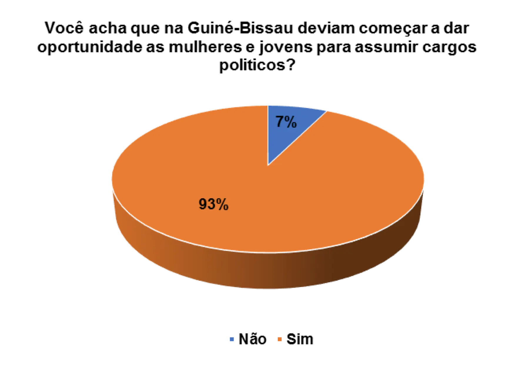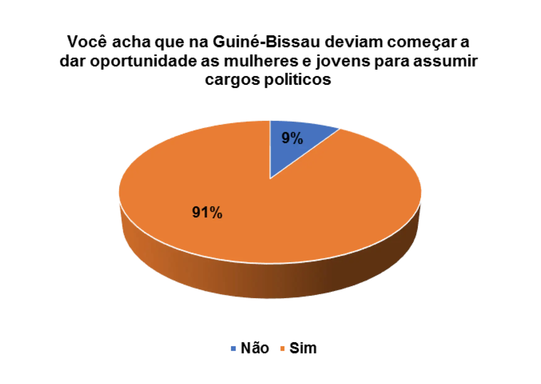Acho que já está na hora de dar oportunidade para os jovens e mulheres. Há muito que estamos com as mesmas pessoas e não vimos nenhum resultado satisfatório, então deve haver mudança dando oportunidade aos jovens e mulheres para mostrarem que são capazes de fazer melhor para o nosso país, quem sabe daremos um passo para frente.