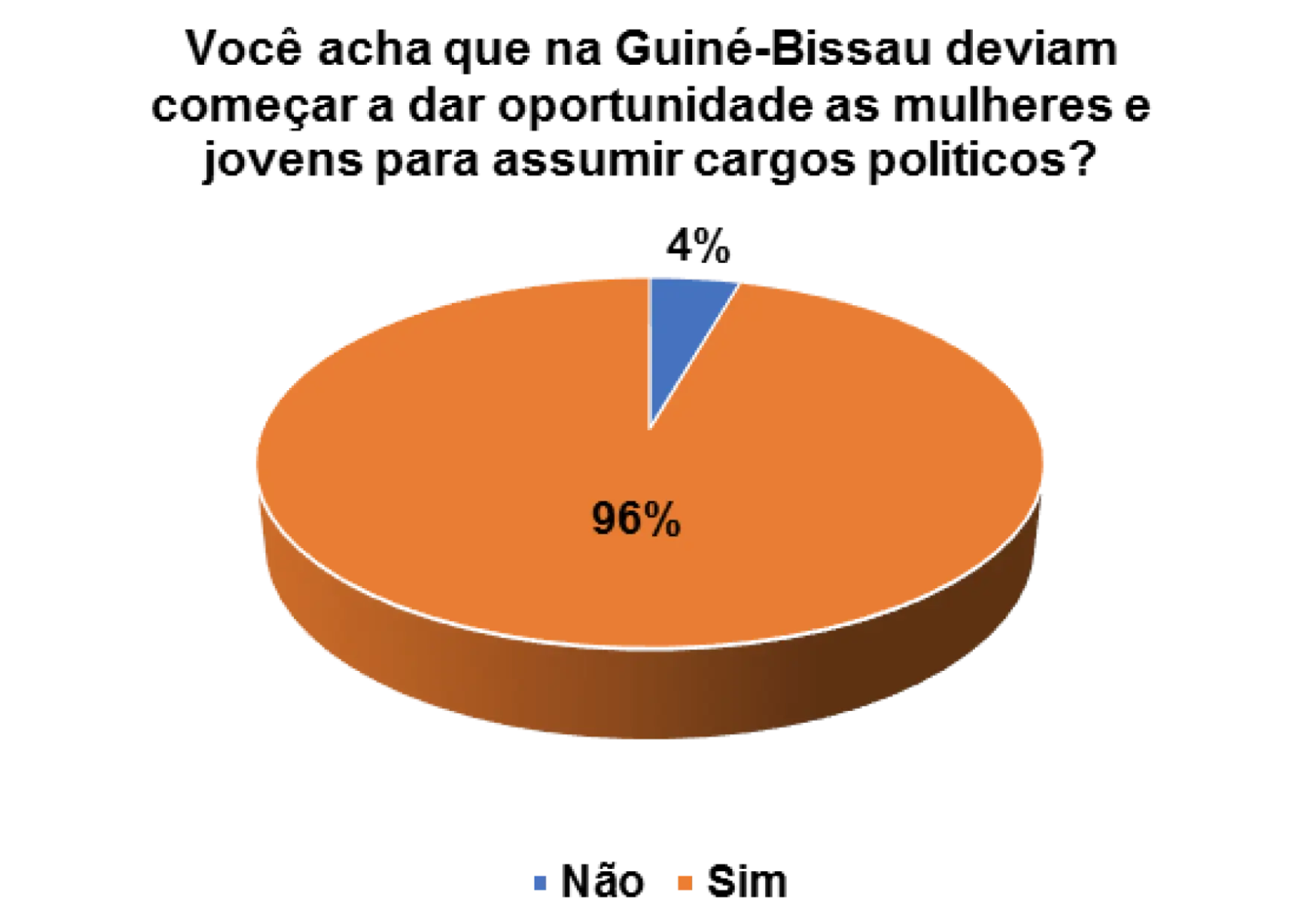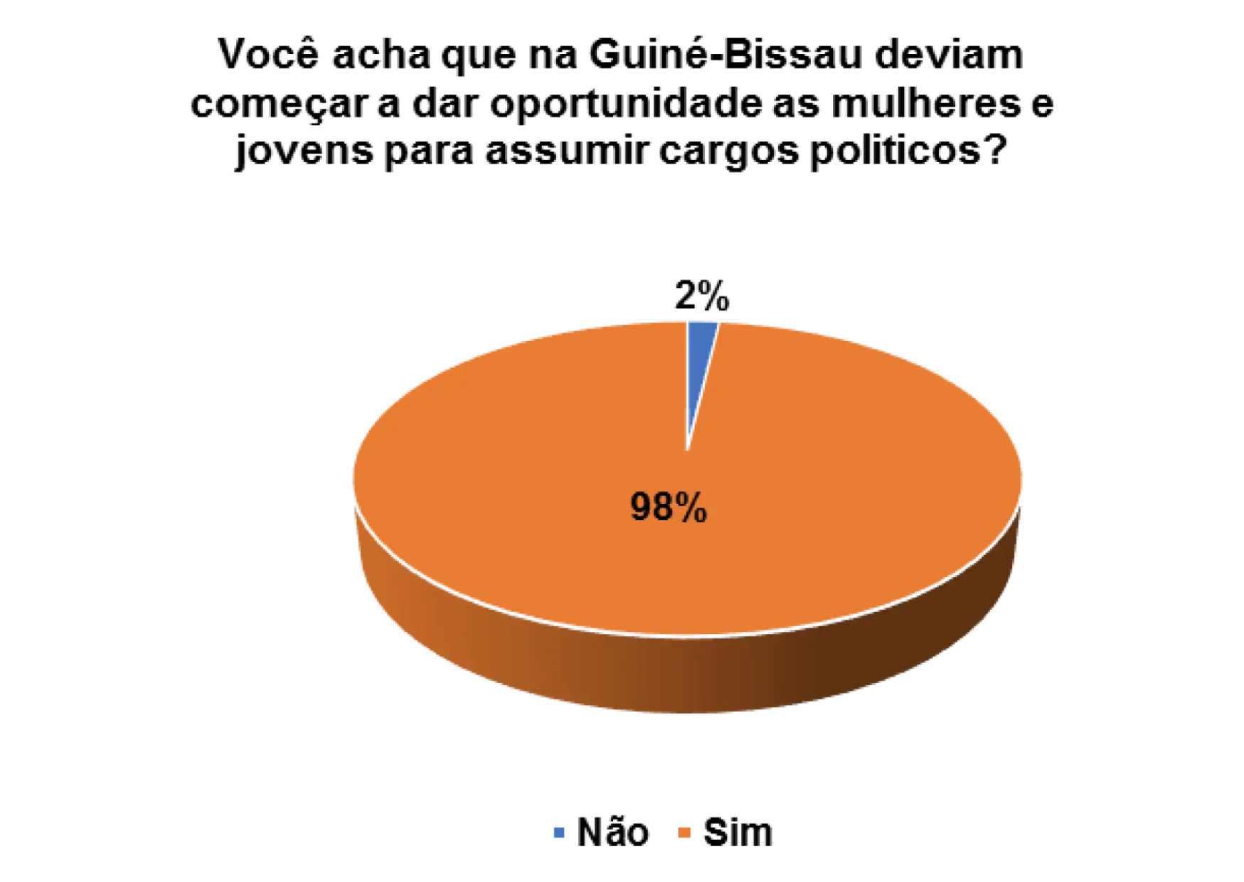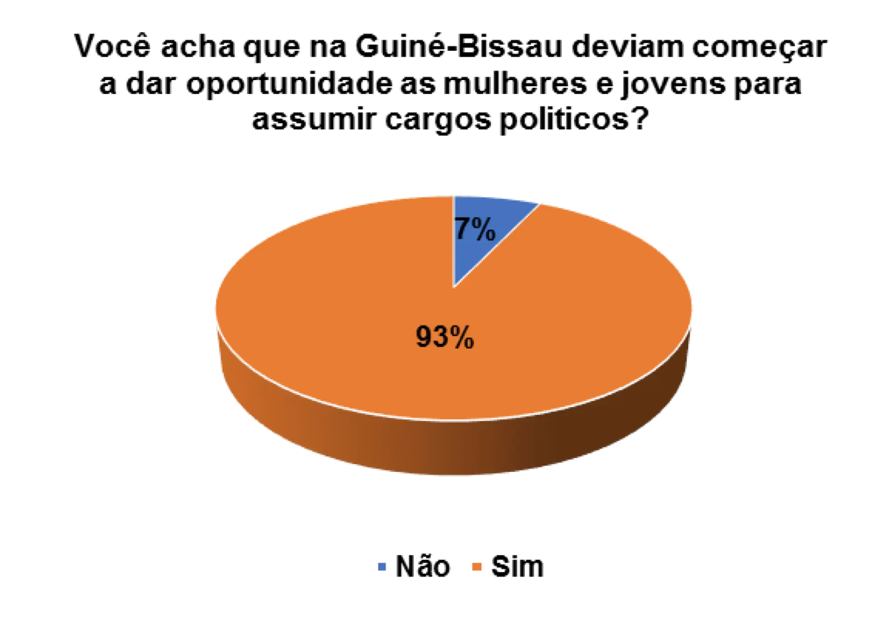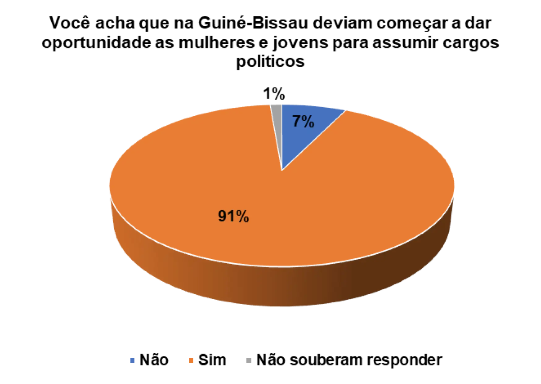 Acho que já está na hora de dar oportunidade para os jovens e mulheres. Há muito que estamos com as mesmas pessoas e não vimos nenhum resultado satisfatório, então deve haver mudança dando oportunidade aos jovens e mulheres para mostrarem que são capazes de fazer melhor para o nosso país, quem sabe daremos um passo para frente.