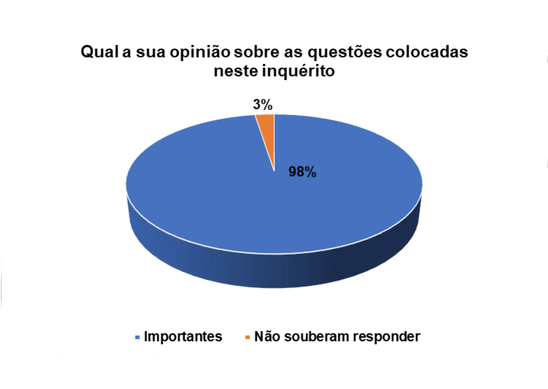 No que concerne a opinião de eleitores entrevistados, de acordo com o gráfico 36, 99% acreditam serem importantes as questões colocadas no inquérito. Certamente, o momento serviu de oportunidade não só para pronunciarem sobre a importância que dão ao seu voto, o histórico do processo eleitoral no país, mas também para entender as suas perceções em relação ao funcionamento das instituições democráticas. Resumidamente pelas opiniões dos eleitores percebe-se que ainda existe muita expetativa sobre aquilo que a democracia é capaz de favorecer em benefício comum, mas deixaram patente a sobreposição da agenda pessoal que tem sido um entrave colocado a uma sociedade na eminência de rotura com os valores democráticos.