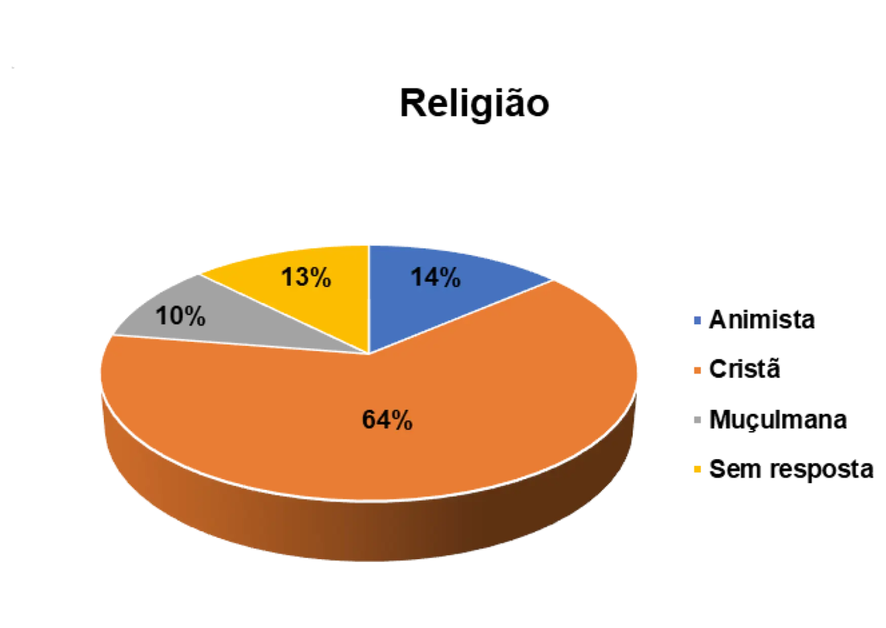 A religião predominante entre os/as entrevistados/as na região de Bolama/Bijagós é a cristã, representada por 64%.