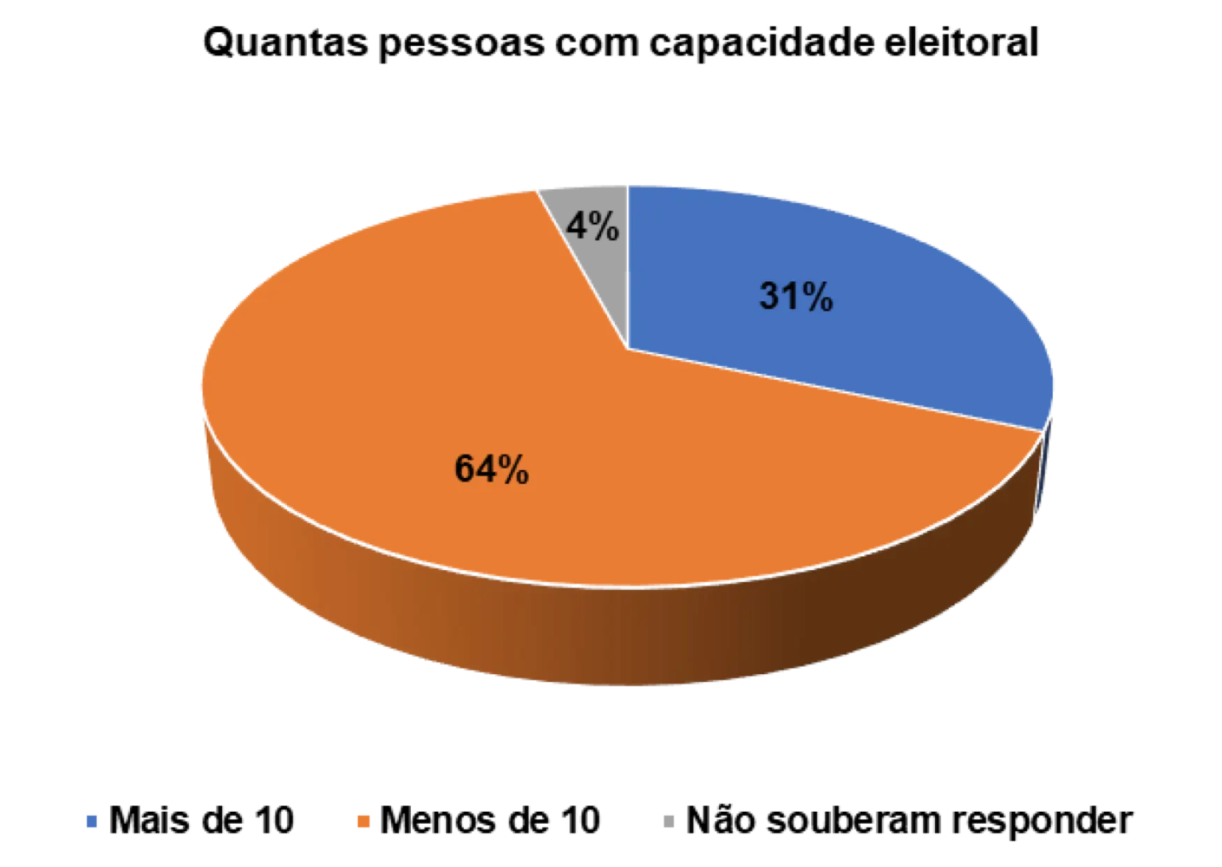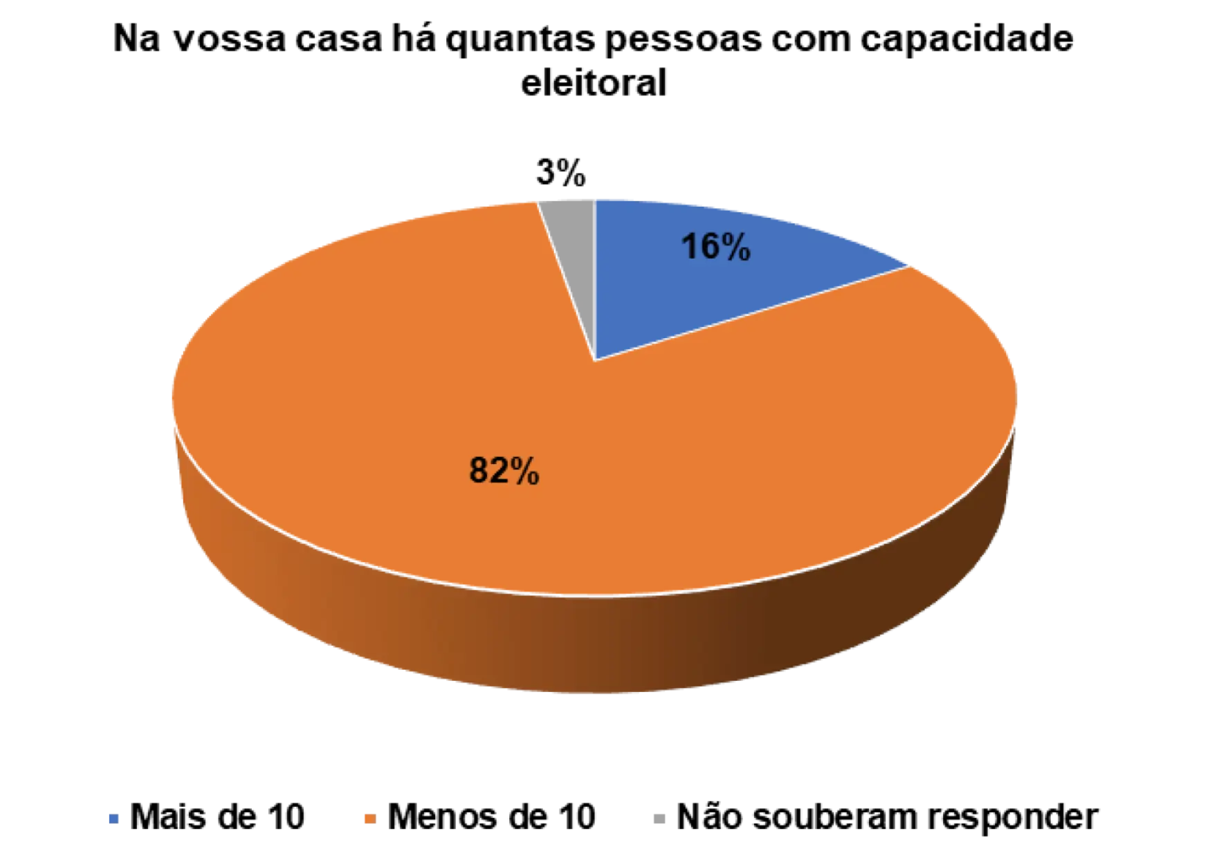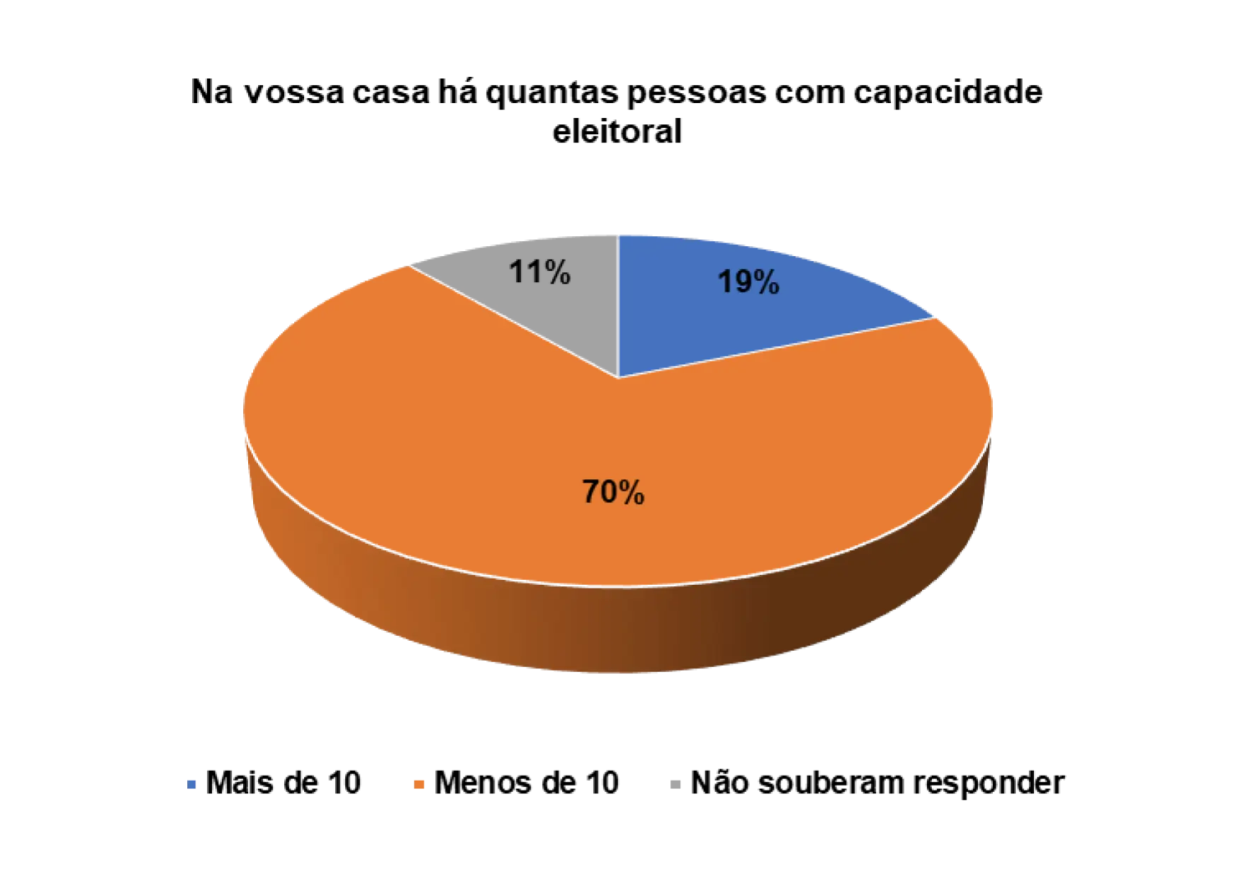 Quando questionados/as sobre a capacidade eleitoral do agregado familiar, 70% afirmam que no agregado menos de 10 pessoas podem votar e 19% responderam que no agregado mais de que 10 podem votar.