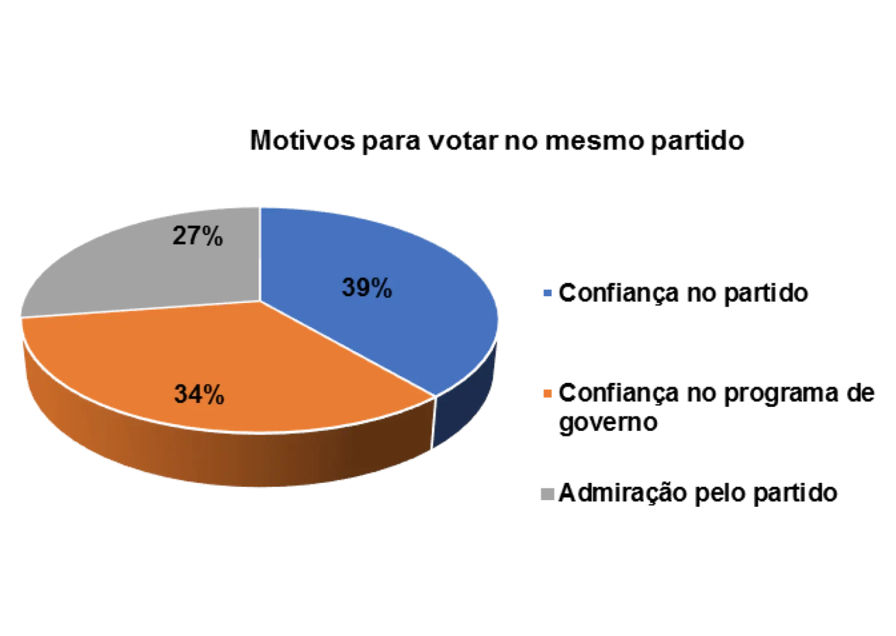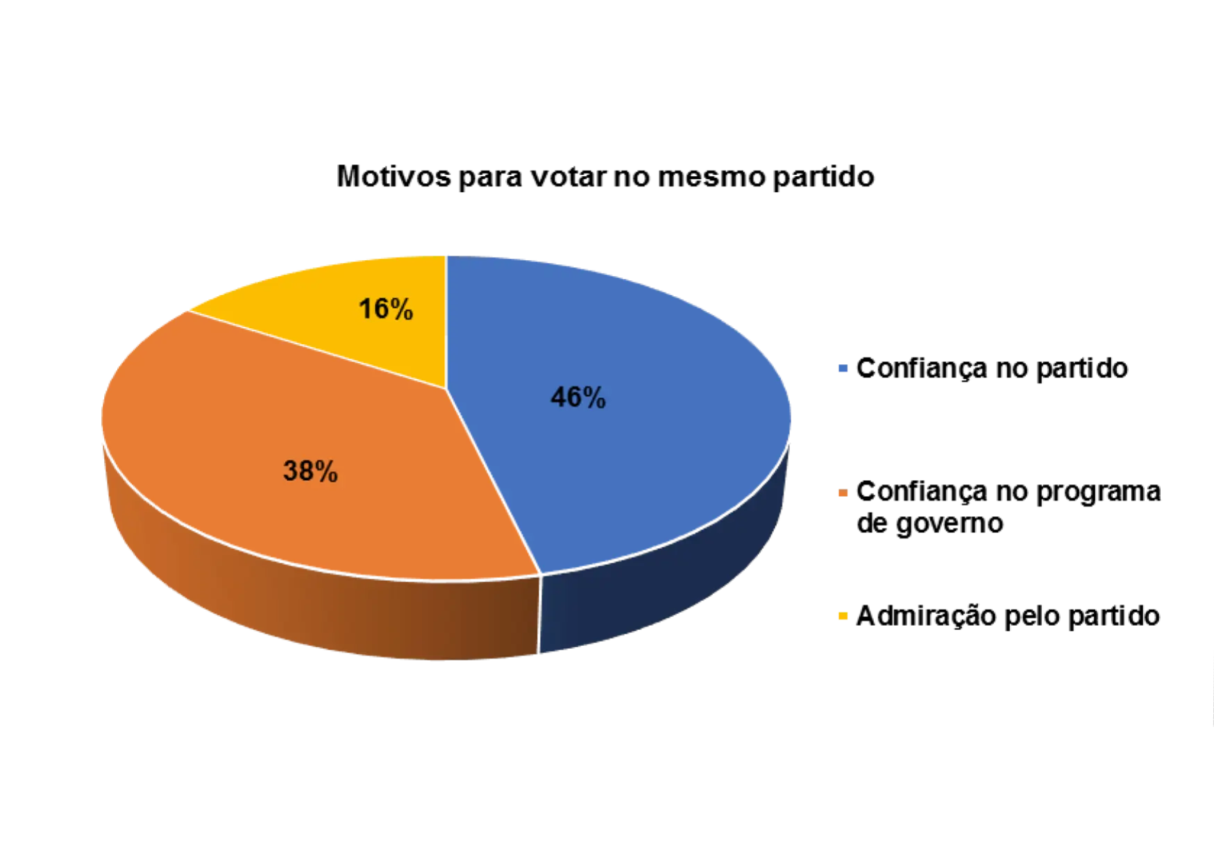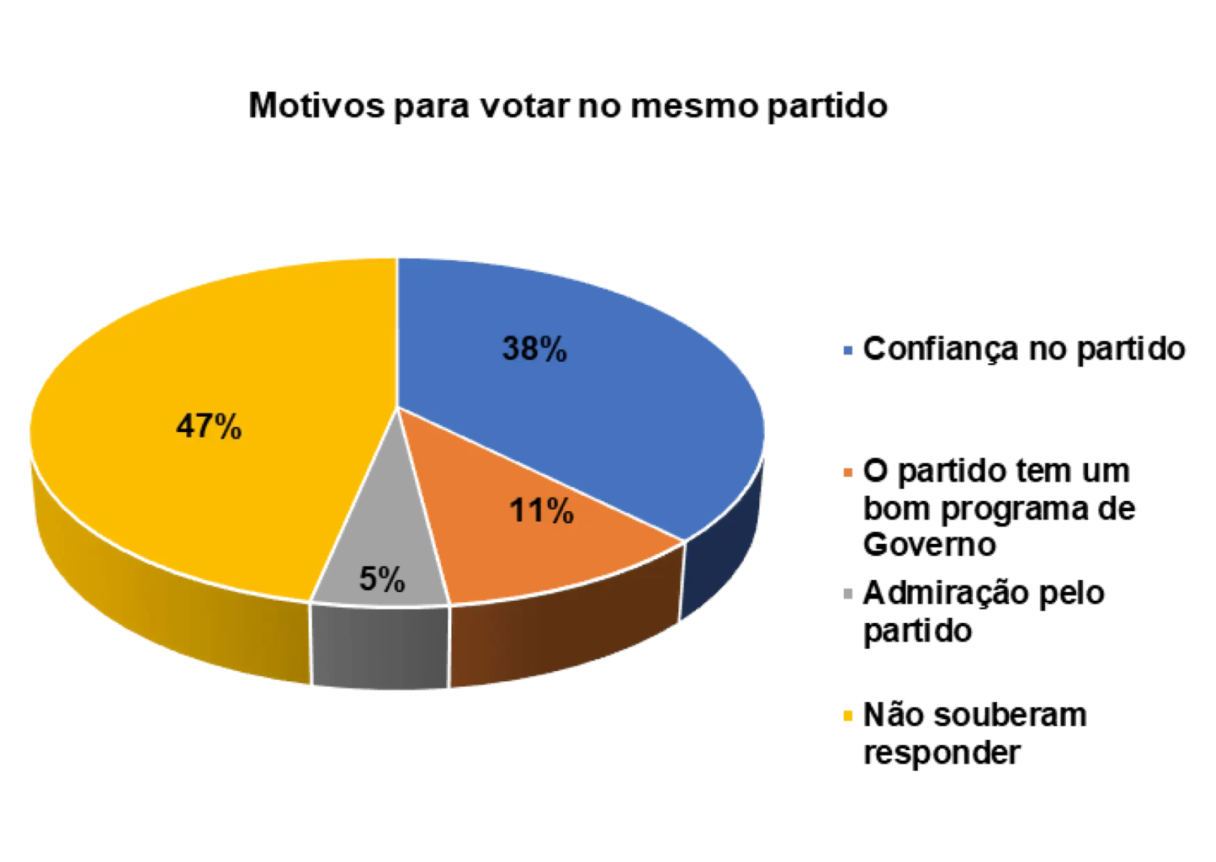 E os principais motivos de terem votado sempre no mesmo partido são: confiança no partido (38%), o partido tem um bom Programa de Governo (11%) e ter admiração pelo partido (5%).