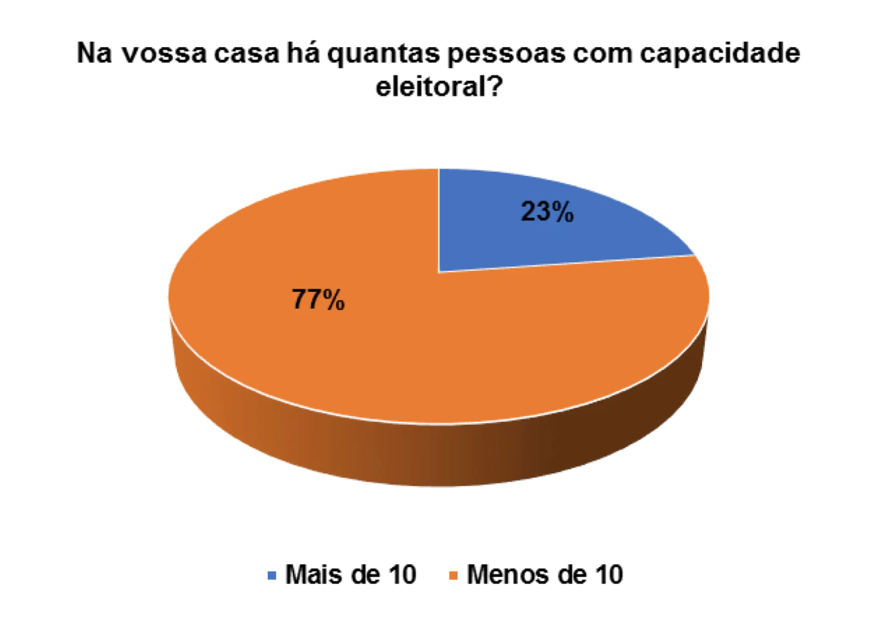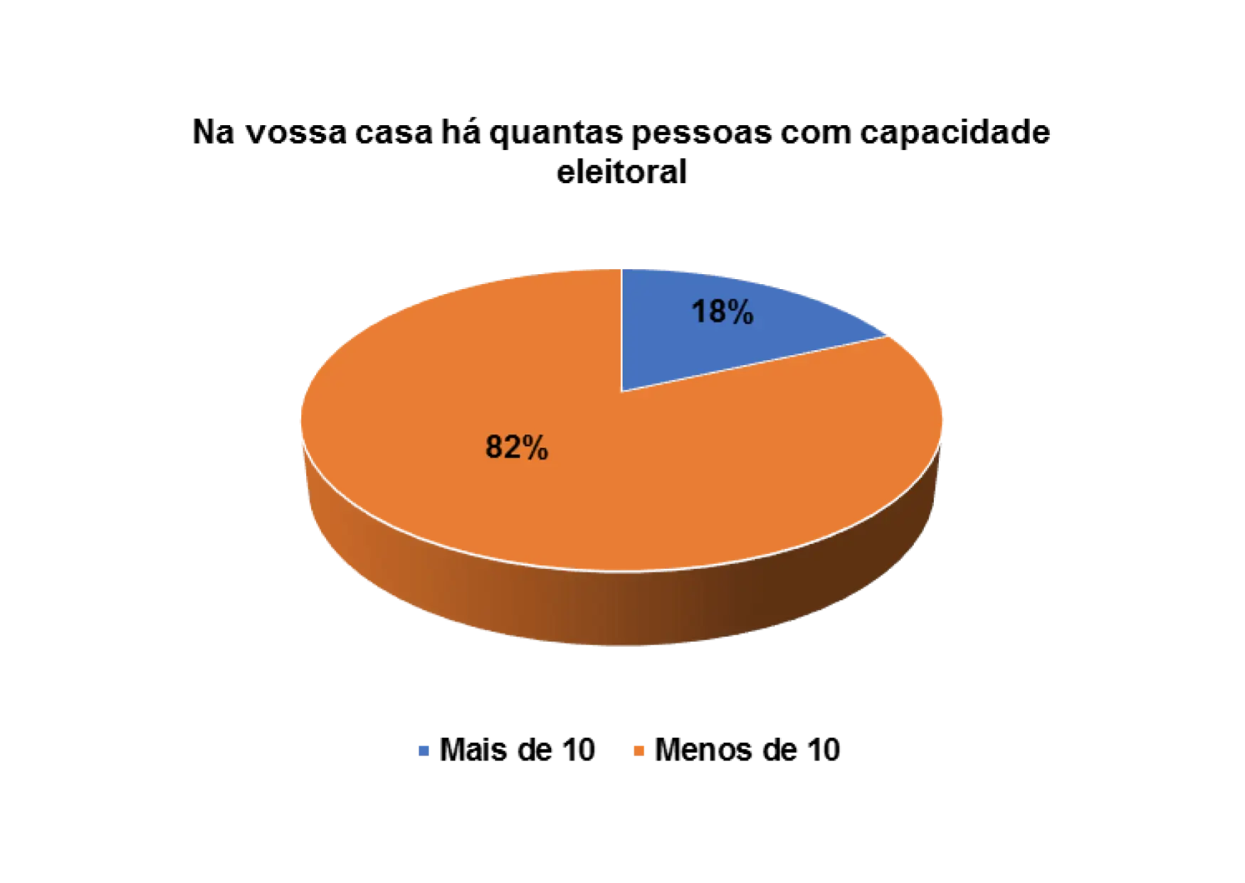 Grande parte dos eleitores entrevistados tem, em menor ou maior número, um parente em casa que reúne condições de exercer o seu direito de voto enquanto cidadão. E nessa ótica, quando questionados sobre a capacidade eleitoral dos seus respetivos agregados familiares, 70% afirmam que têm menos de 10 pessoas em casa, em idade de votar, enquanto 19% têm mais de 10.