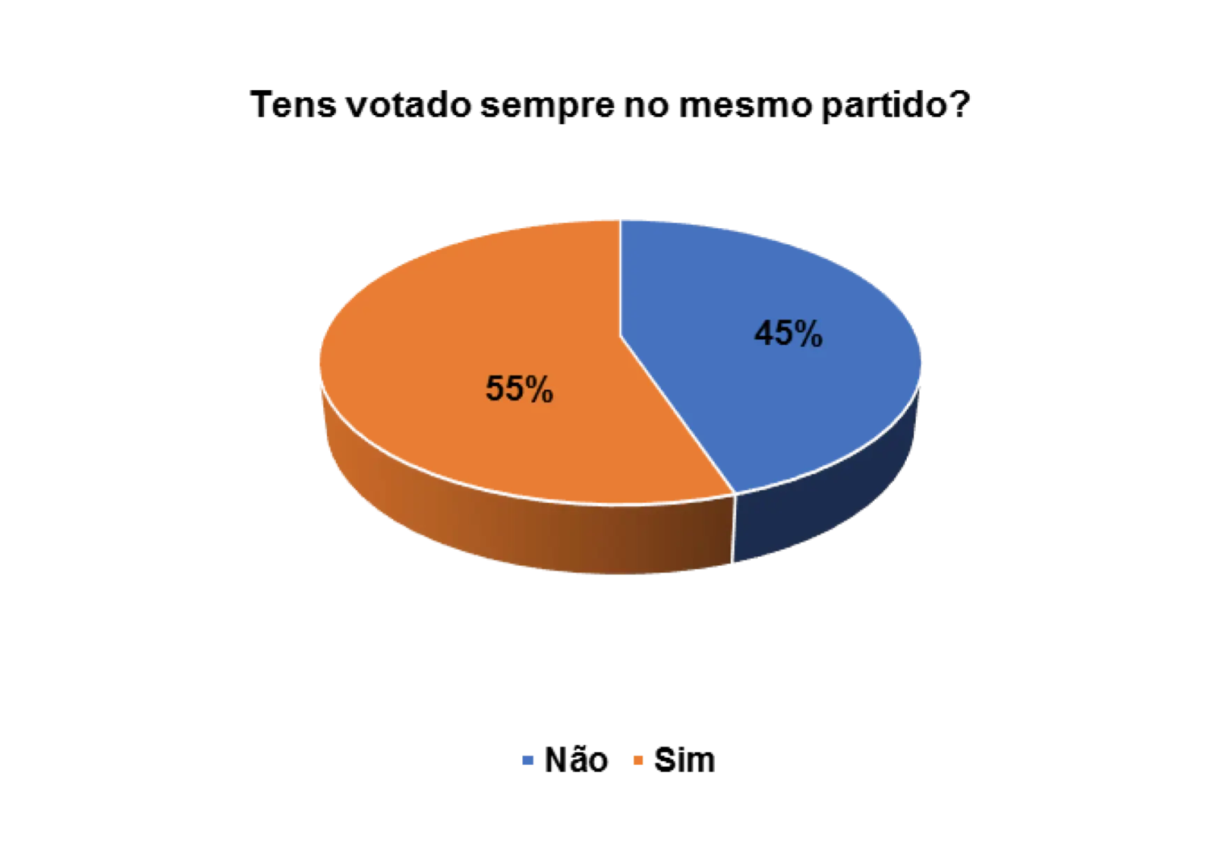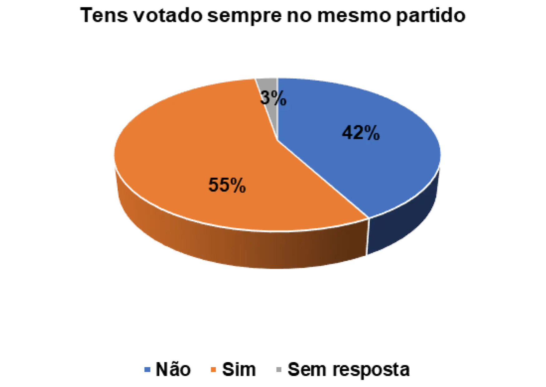 Durante o estudo também foi possível medir o nível de confiança que os eleitores entrevistados possuem em relação ao partido. Segundo o gráfico 14, verifica-se que 42% afirmam que não votam sempre no mesmo partido, enquanto 55% afirmam que têm votado sempre no mesmo partido.