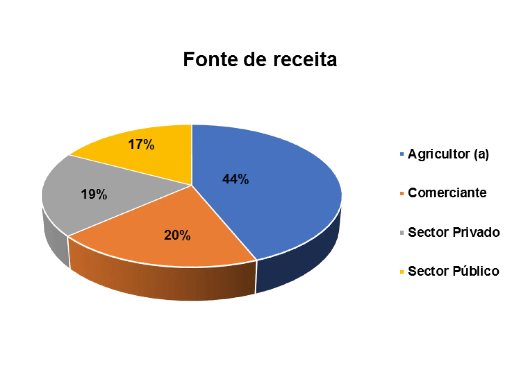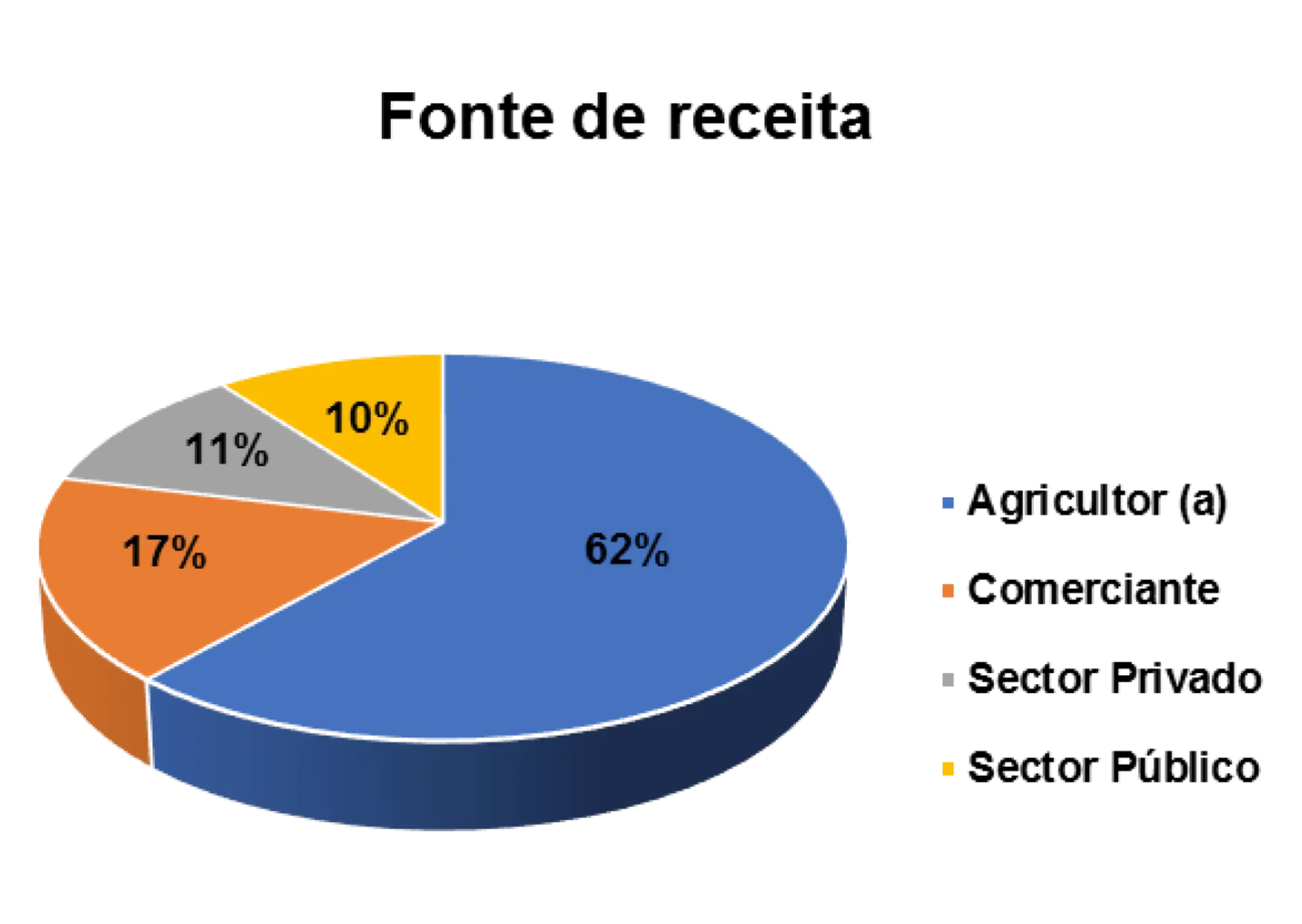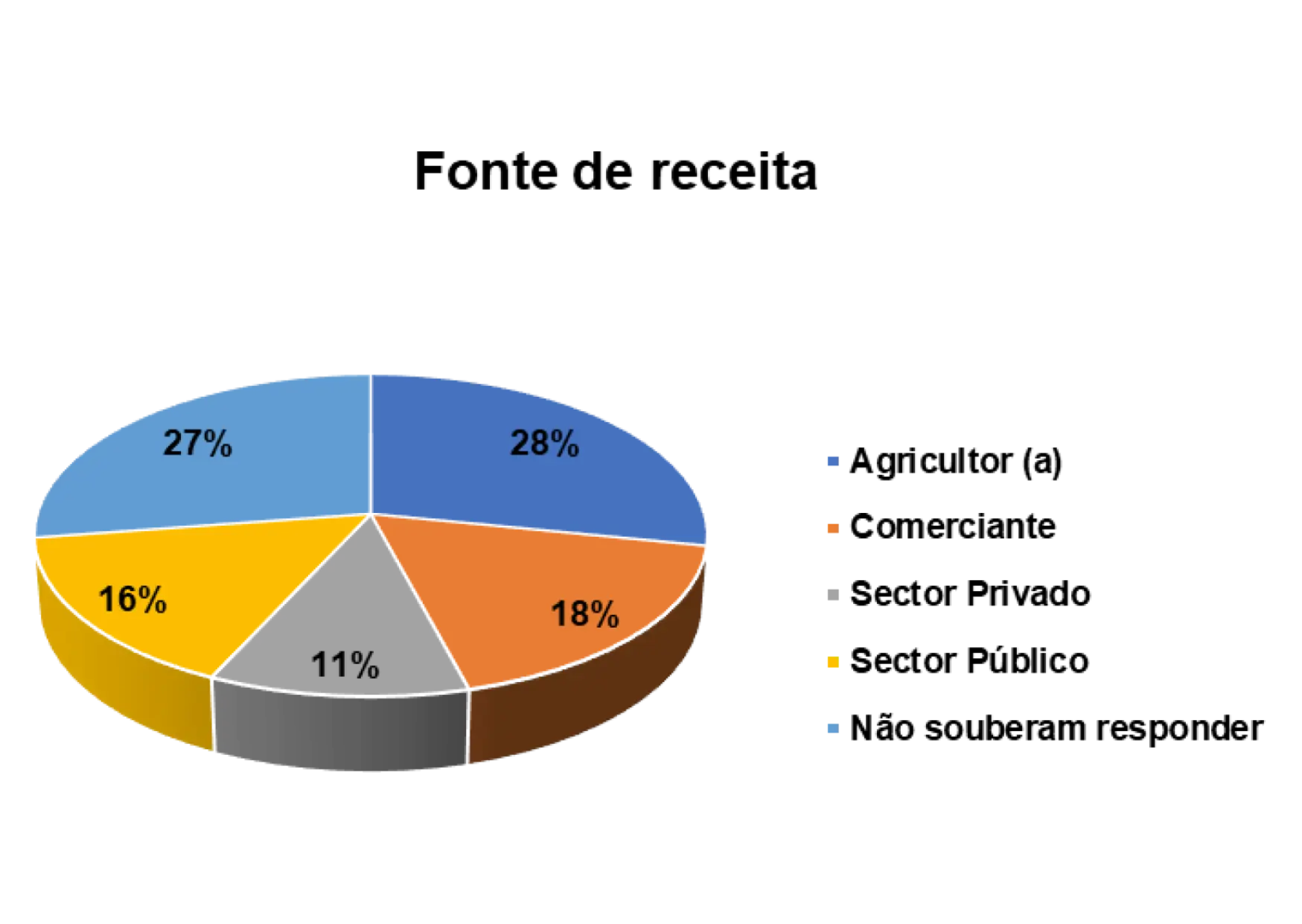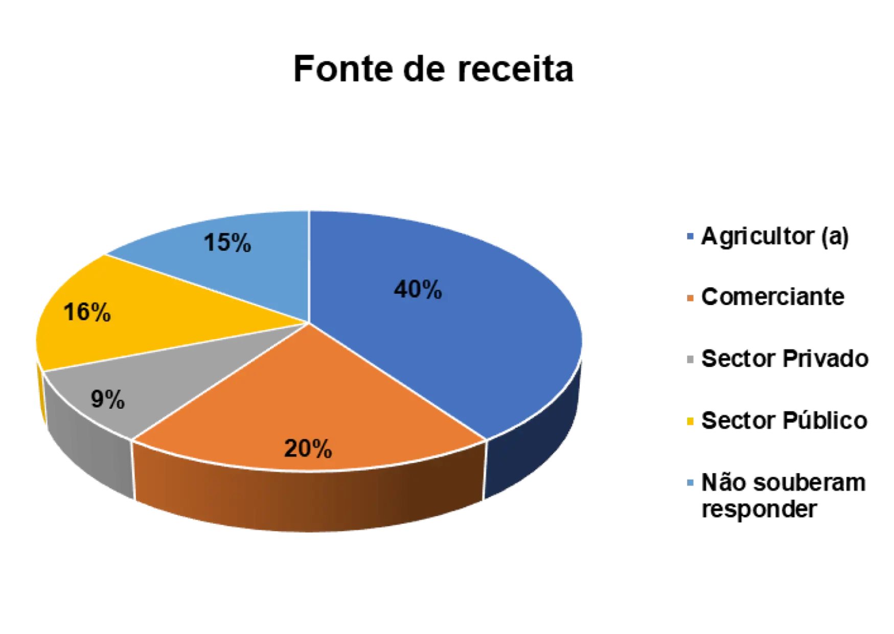 Outro aspeto relevante que o estudo buscou ilucidar são dominios de atividades laborais dos/as entrevistados/as. Num universo de 152 entrevistados/as, 40% são agricultores/as, 9% trabalham no setor privado, 16% no setor público e 20% são comerciantes.