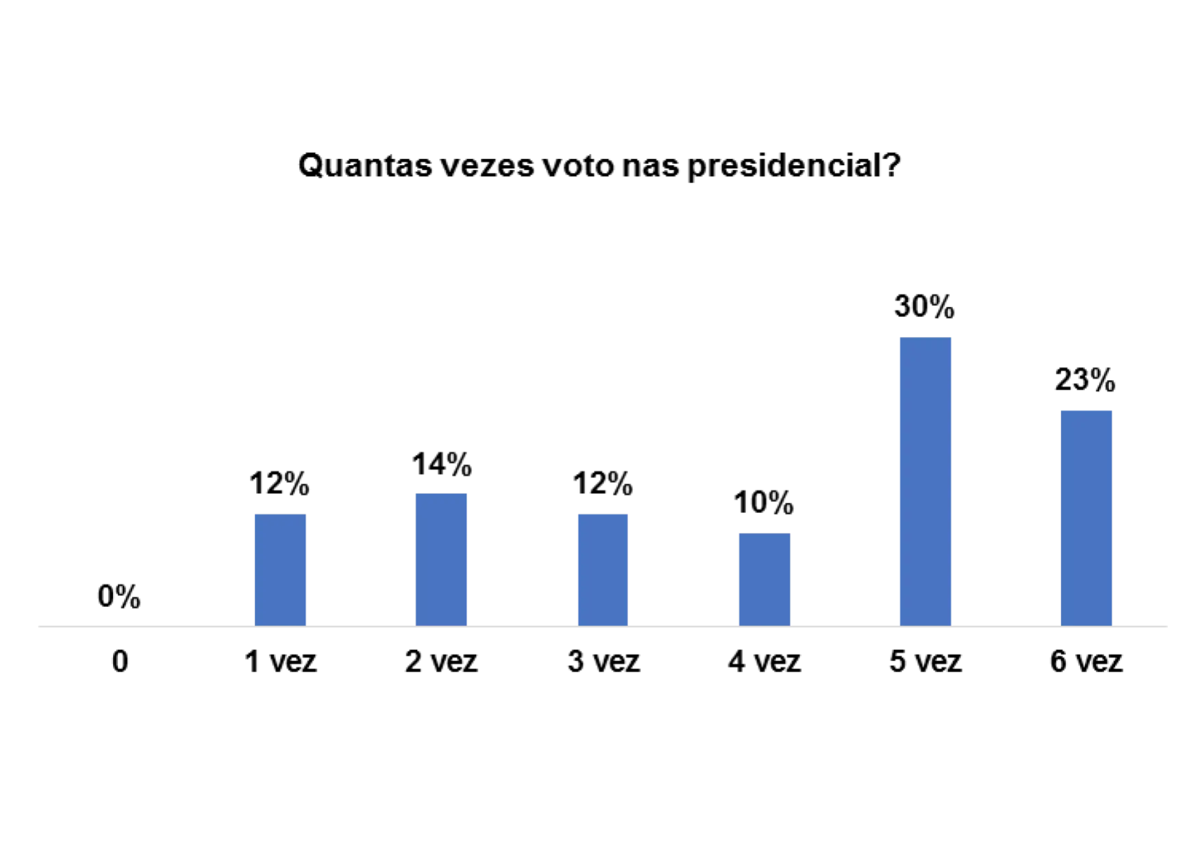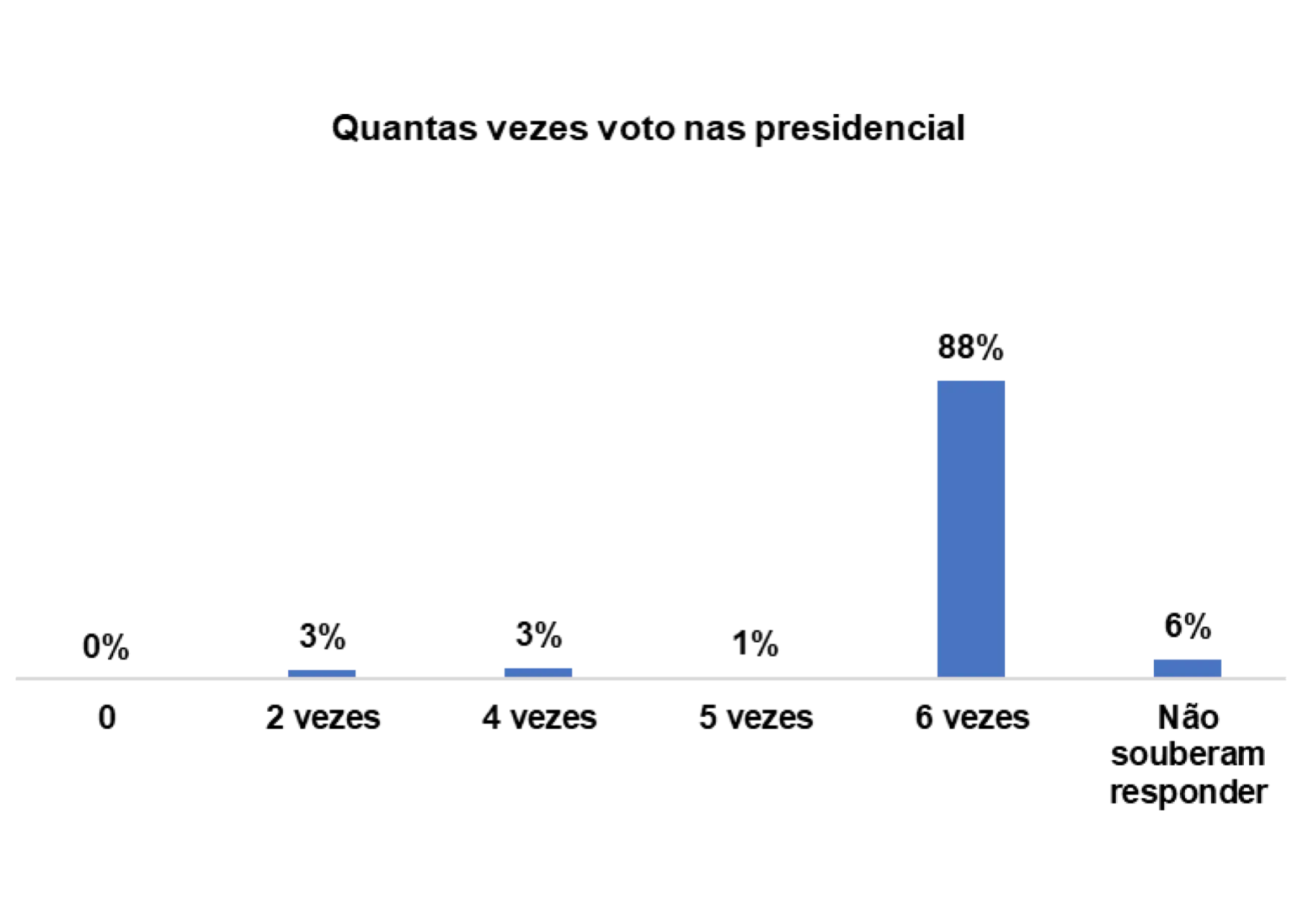De igual modo, nas eleições presidenciais, a participação corresponde com a anterior, e 88% dos eleitores entrevistados afirmam terem votado pelo menos 6 vezes.