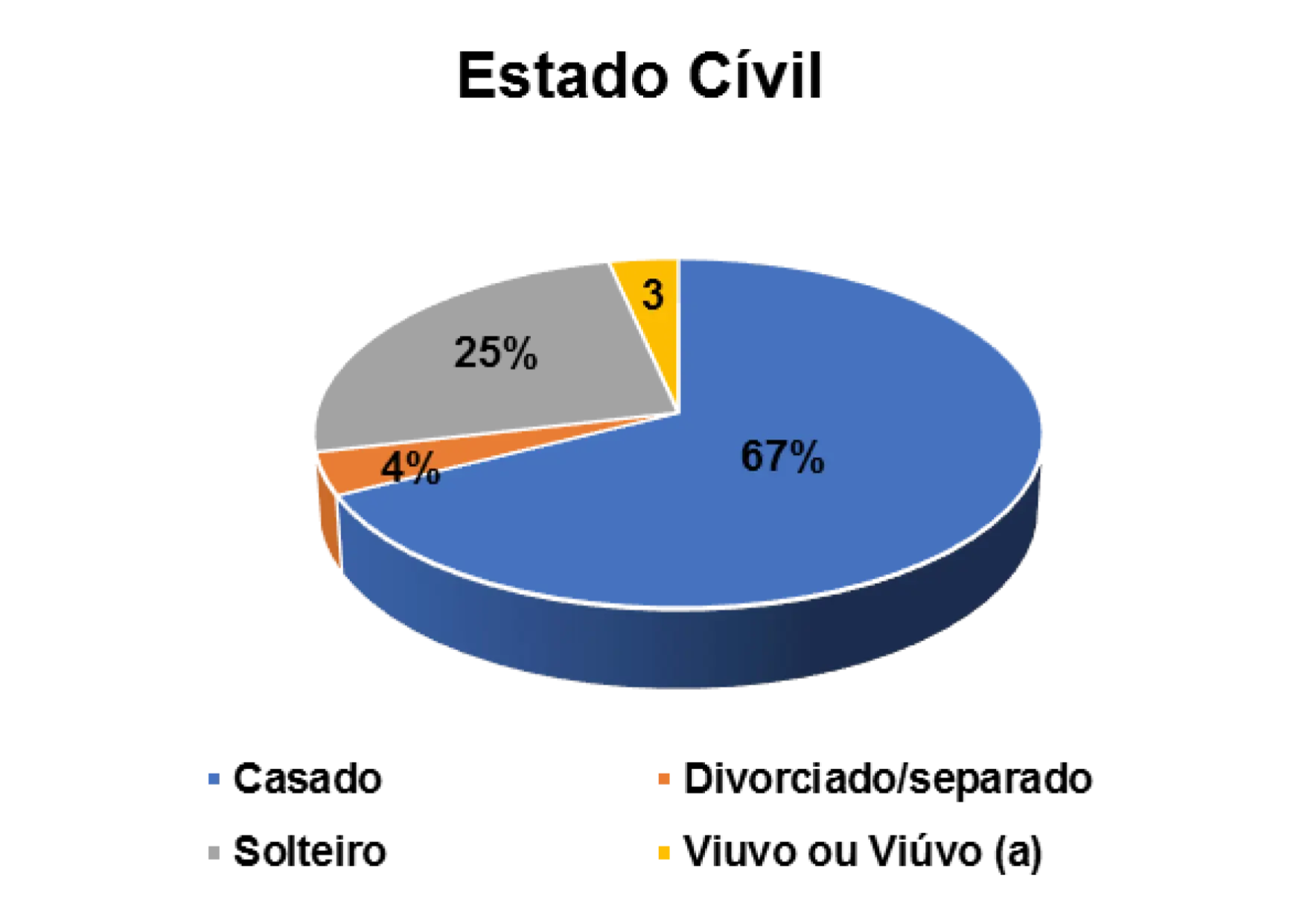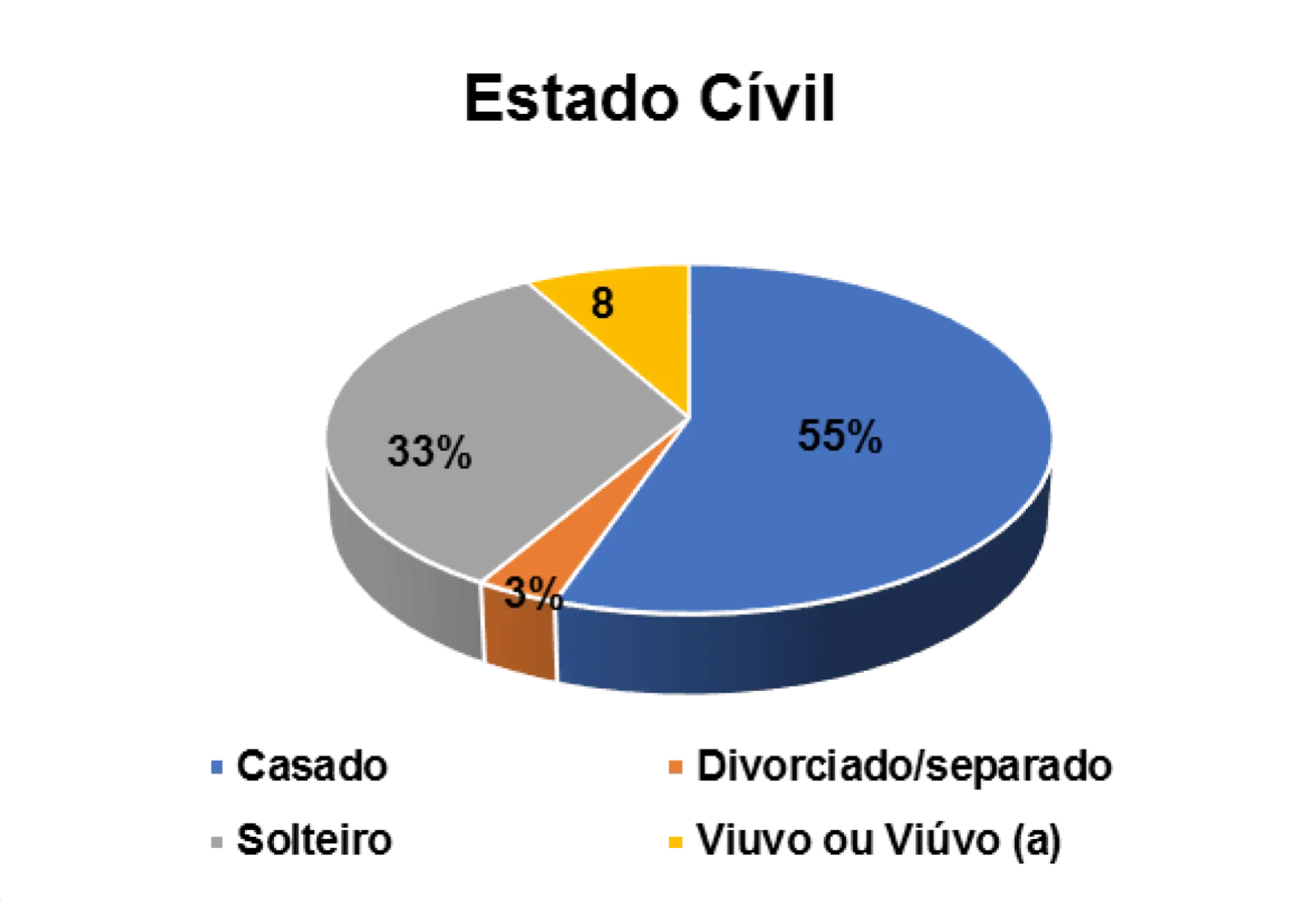 No que diz respeito ao estado civil dos/as entrevistados/as, constatou-se que 63% são casados (as), 30% são solteiros (as), 5% são divorciados (as) e 3% são viúvos (as).