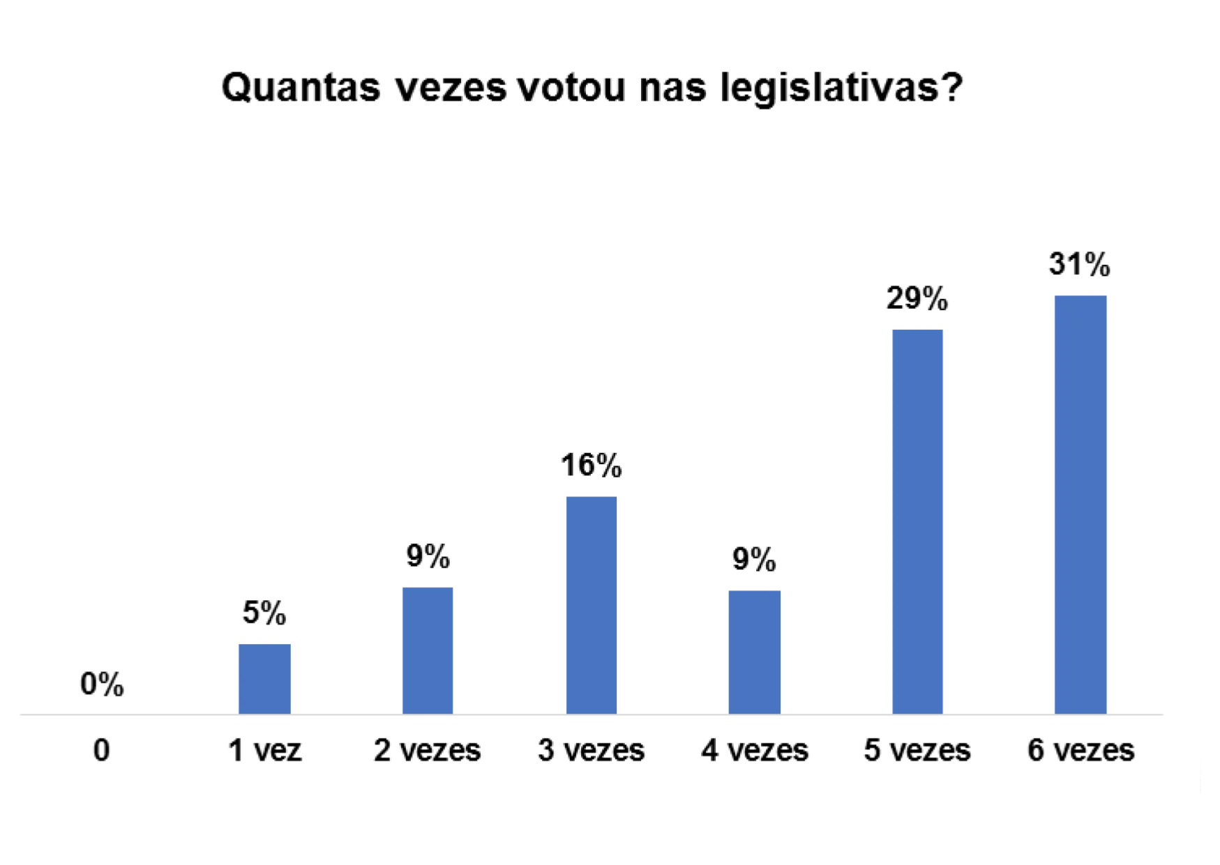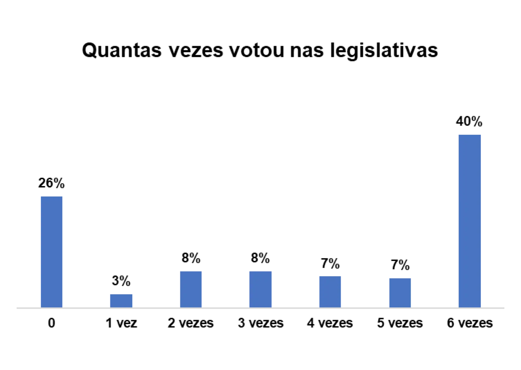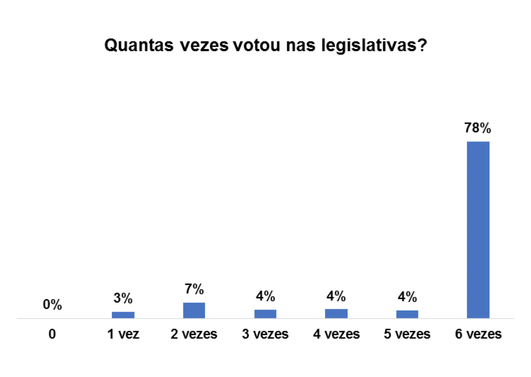 Em relação ao número de vezes que os entrevistados/as votaram nas eleições legislativas passadas, 78% afirmam ter votado pelo menos 6 vezes.