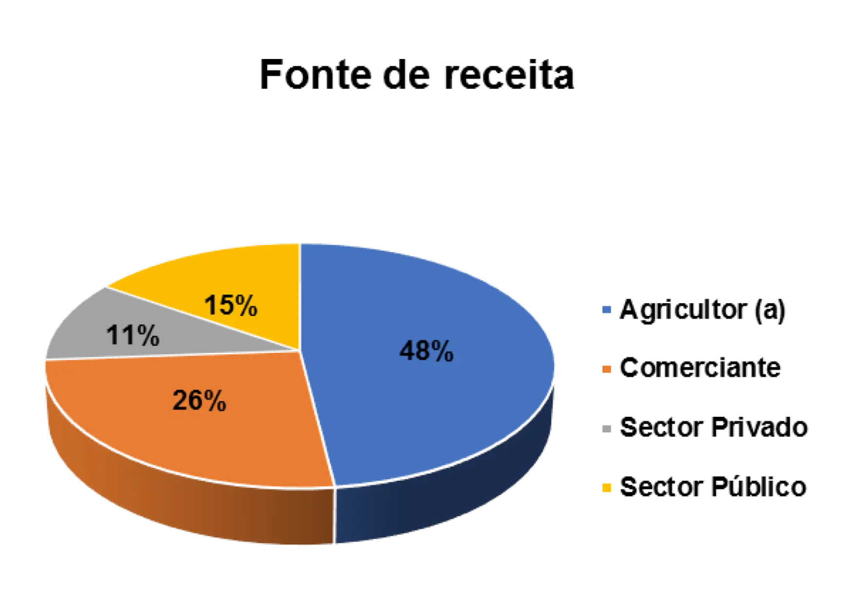 Outro aspeto relevante que o estudo buscou ilucidar são dominios de atividades laborais dos/as entrevistados/as. Num universo de 3646 entrevistados/as, 26% são agricultores/as, 18% trabalham no setor privado, 16% no setor público e 15% são comerciantes.