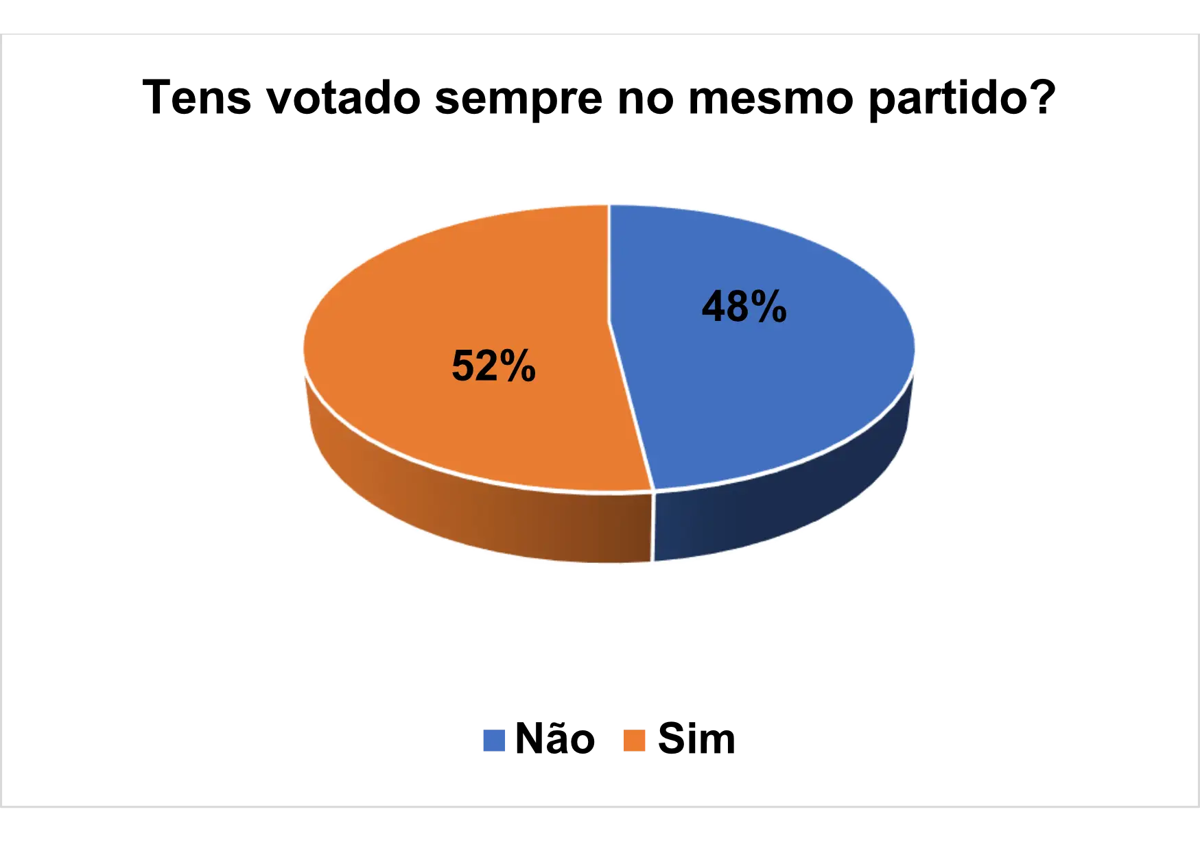 Durante o diagnostico também foi possível medir o nível de confiança que os entrevistados/as possuem em relação ao partido. Segundo o gráfico 14, verifica-se que 48% afirmam que não votam sempre no mesmo partido enquanto 52% afirmam que sim tem votado sempre no mesmo partido.