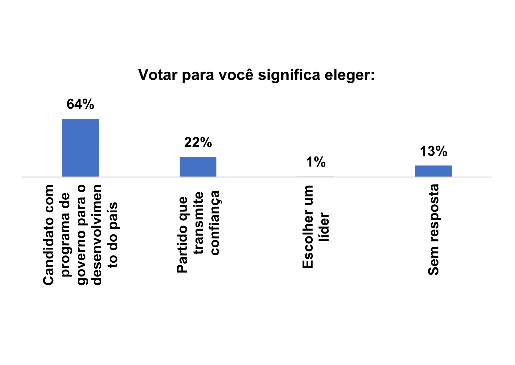Segundo o gráfico 23, 90% dos eleitores entrevistados afirmam que votam nas eleições pensando que seria uma oportunidade de resolver os problemas que o país enfrenta. Teoricamente, com esse posicionamento os eleitores demonstraram possuir um dos principais motivos que caracteriza o ato de voltar, que é de atender os desafios que o país pretende resolver.