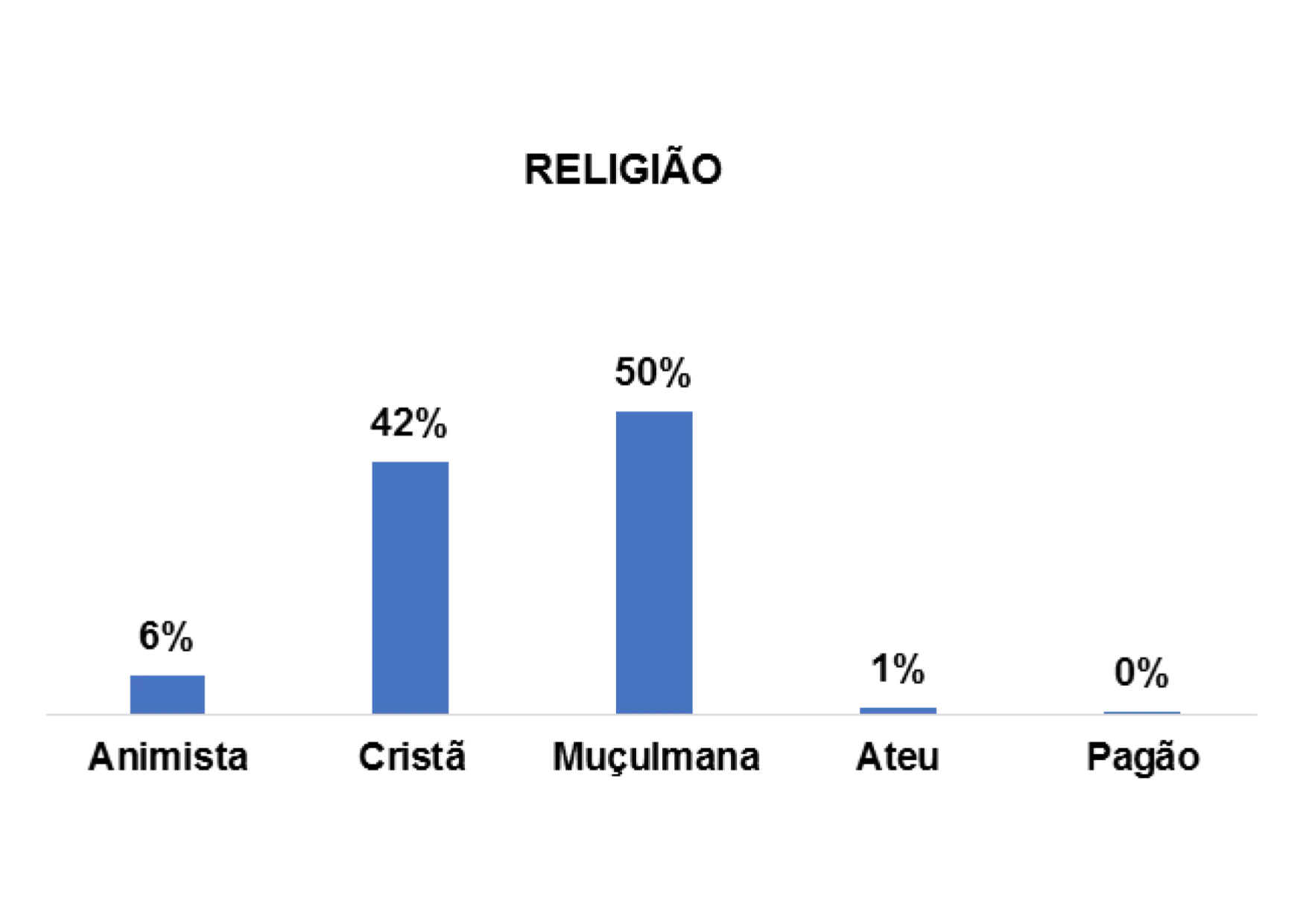 A religião predominante entre os/as entrevistados/as é a muçulmana, representada por 50%.