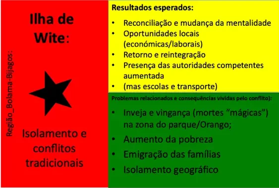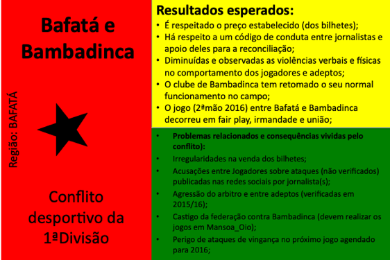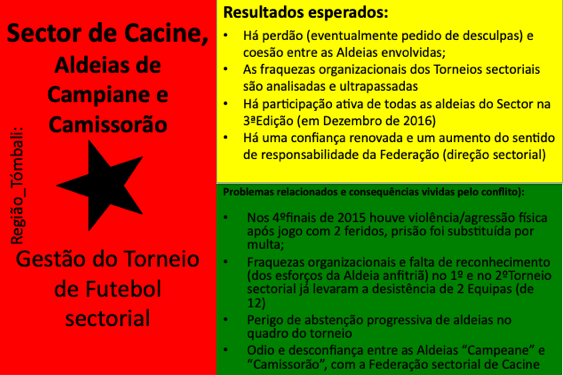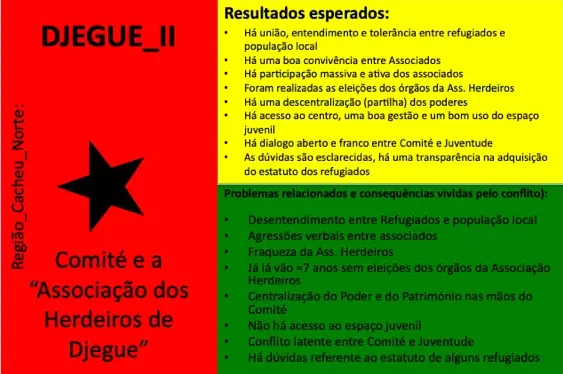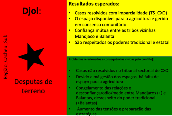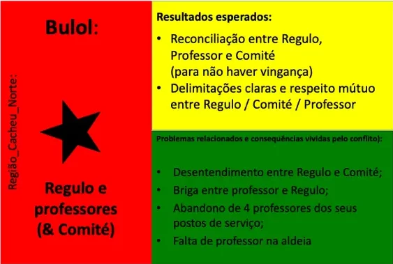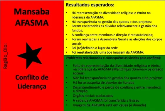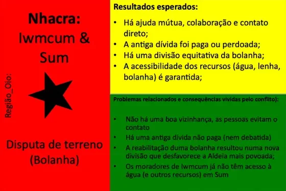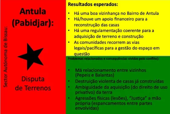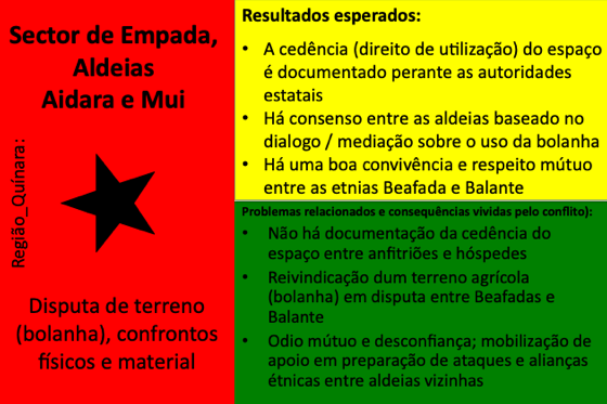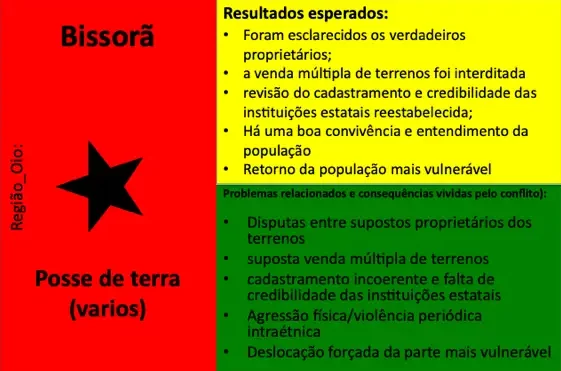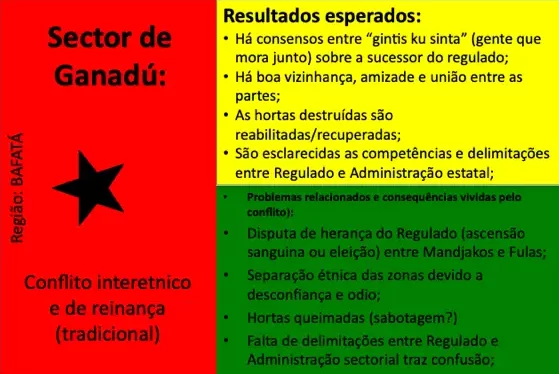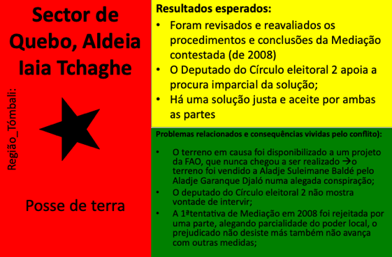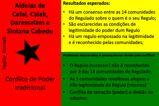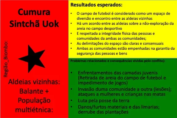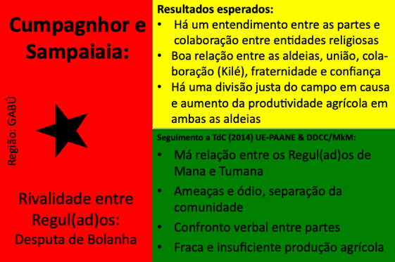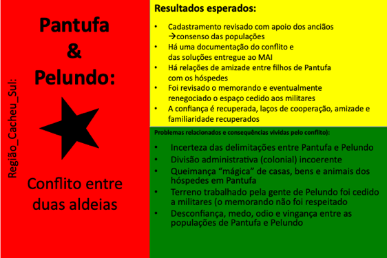 Até ao momento, 54 conflitos e situações complexas de conflito foram documentados. Muitos deles revelam padrões recorrentes em diferentes regiões, como disputas de liderança, conflitos ligados à posse e delimitação de terras, rivalidades religiosas, tensões associadas ao desporto (em particular ao futebol), ou ainda conflitos relacionados com meios de subsistência e restrições ambientais ou de conservação da natureza. Embora a fase formal de mediação tenha sido concluída com a documentação, todos os casos continuam a ser acompanhados e observados pelos Grupos de Kumpuduris di Paz, numa lógica de vigilância comunitária, aprendizagem contínua e responsabilidade partilhada pela paz social.