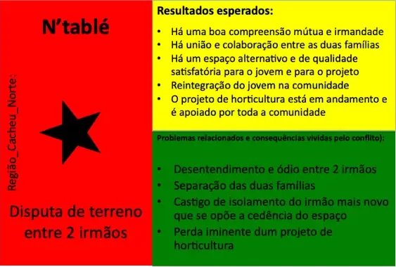 As mediações aqui apresentadas integram um percurso formativo e prático desenvolvido no âmbito da primeira fase do projeto Fórum de Paz (2015 a 2018), com os Kumpuduris di Paz como protagonistas centrais. Cada caso documentado resulta de um processo estruturado de aprendizagem, ação no terreno e reflexão coletiva, concebido para reforçar capacidades locais de prevenção, mediação e transformação pacífica de conflitos.