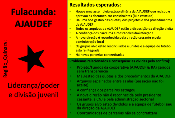 Cada mediação culminou na elaboração de uma documentação escrita, que sistematiza a análise inicial, os passos dados, as propostas de solução, os resultados alcançados e as recomendações formuladas. Esses dossiês foram formalmente entregues às autoridades administrativas competentes — governadores regionais, administradores de setor, câmaras municipais e outros parceiros locais — como contributo para o seguimento institucional e para eventuais decisões de política pública.