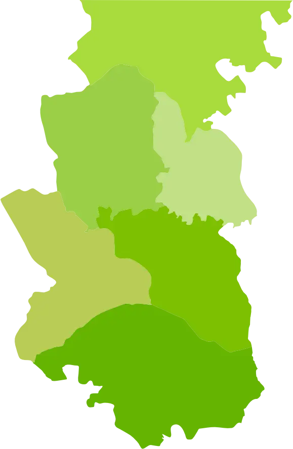 Este mapa apresenta as 8 regiões da Guiné-Bissau e o Setor Autónomo de Bissau, onde foi realizada a pesquisa Udju riba di nô votu.